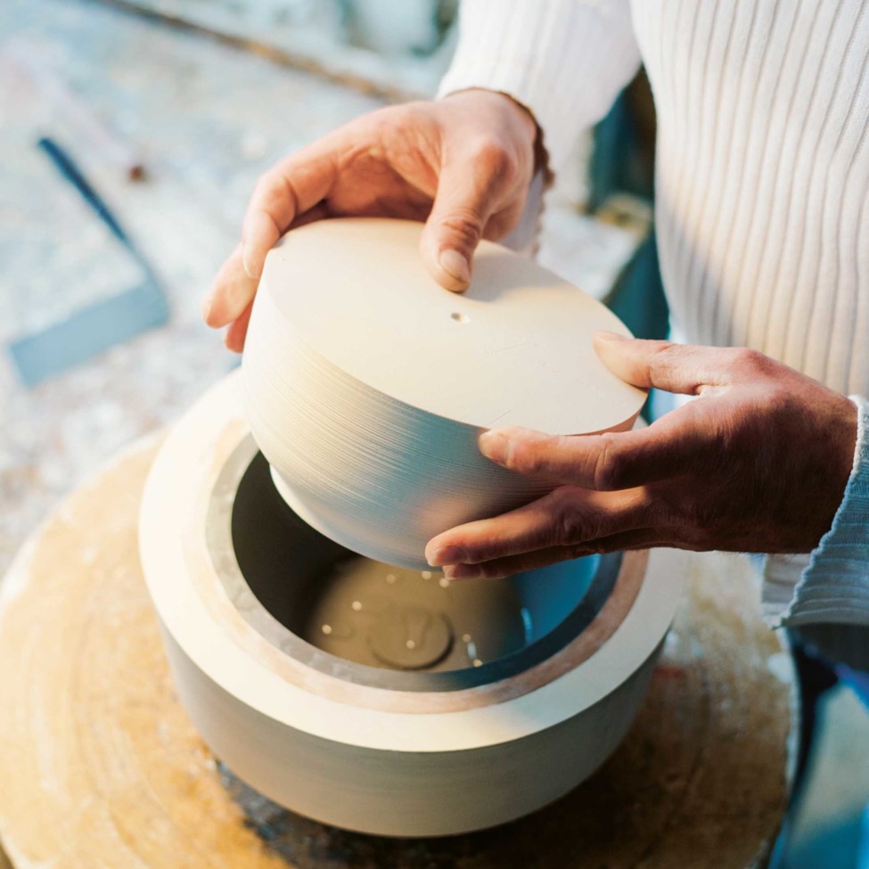 Niezwykle cienki korpus FÜRSTENBERGa wymaga również tak zwanych pomocy odpalania, które zapobiegają wypaczaniu się produktu, np. Te pomoce do strzelania są wykonane z tej samej porcelany, co sam przedmiot, ponieważ muszą kurczyć się o ten sam czynnik podczas wypalania. Dlatego wsporniki nie mogą być ponownie użyte po wypaleniu. Niemal każdy produkt potrzebuje zatem własnej pomocy przypalaniu, której nie można już używać.