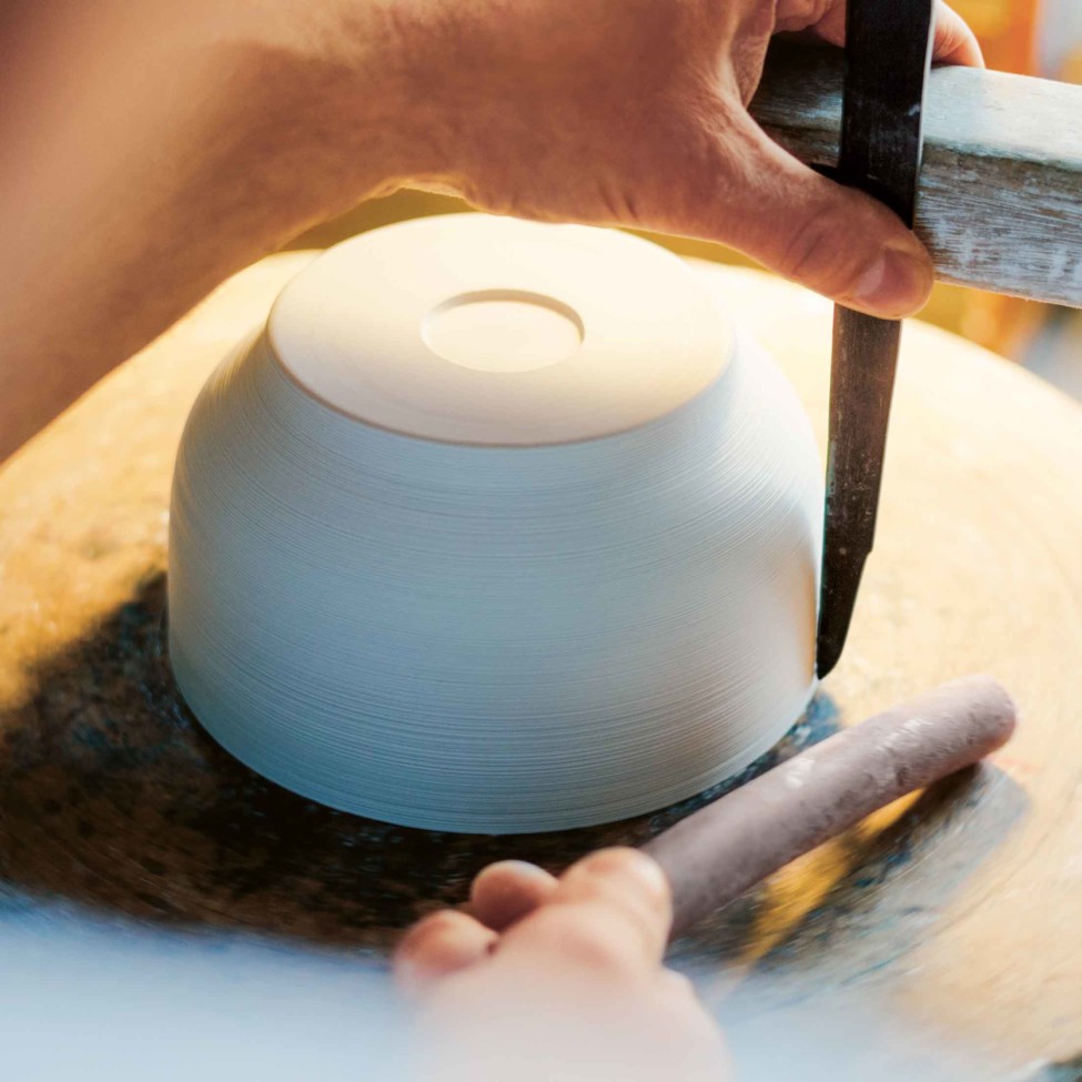Dwuścienne naczynia, których płytkie ściany wewnętrzne i zewnętrzne można składać samodzielnie ręcznie; dekory zbiegające się pod rączką lub złote dekoracje, które biegną za burtę (np. obręcz kubka) i mogą być malowane tylko ręcznie.