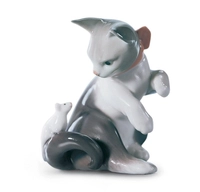( ilość produktów: 29 )Porcelanowe figurki przedstawiające ukochane psy i koty stanowią wyjątkowe wyrażenie miłości do zwierząt i jednocześnie są estetycznym dodatkiem do wnętrza domu. Te delikatne rzeźby ukazujące czworonogi są pełne wdzięku i oddają unikalne cechy ras, co czyni je nie tylko ozdobą, ale także sentymentalną pamiątką dla miłośników zwierząt. W przypadku porcelanowych figur przedstawiających psy, artystyczne detale ukazujące charakterystyczne rysy ras, od eleganckich chihuahua po majestatyczne bernardyny, są odzwierciedleniem różnorodności i piękna psiego świata. Postawy i wyraz twarzy każdego psa są starannie odwzorowane, co czyni figurki realistycznymi i budzącymi sympatię. Figurki kotów z porcelany często ukazują te zwierzęta w różnych, zabawnych pozach, podkreślając ich niezależny i uroczy charakter. Finezyjne detale futra, zwłaszcza u długowłosych ras, czy wyraziste oczy dodają każdej figurce subtelnego piękna i przykuwają wzrok.