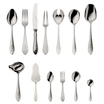 Zestaw srebrnych sztućców środka stołu 9 el.