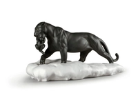 Czarna pantera z młodym