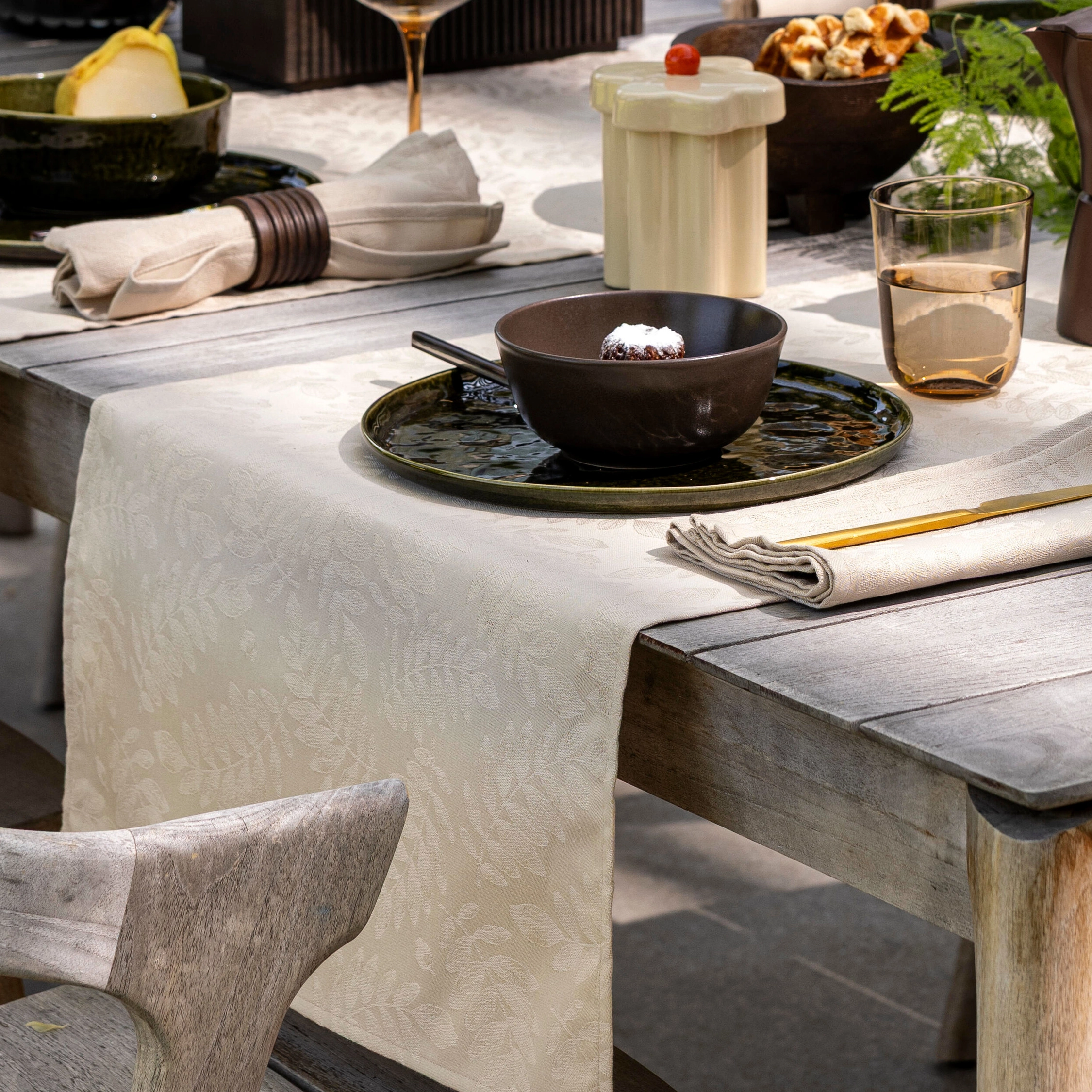 - Bawełniany bieżnik 50 x 150 cm w kolorze beżowym z kolekcji Vegetal Mood od Le Jacquard Francais.