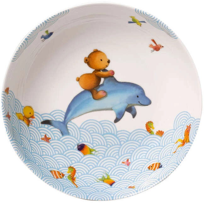 Talerzyk głęboki z kolekcji Happy as a Bear. Kolekcja Happy as a Bear to nowa odsłona porcelany i sztućców stworzona z myślą o najmłodszych. Motyw wesołego, uroczego niedźwiadka umili każdy posiłek Twojemu dziecku i sprawdzi się zarówno dla dziewczynek, jak i chłopców. Cała kolekcja ma przywoływać na myśl ekscytujące przygody, piasek, wodę i słońce oraz zaprosić dzieci do odkrywania świata razem z niedźwiadkiem. Kolorowe obrazki uatrakcyjnią potrawę lub deser i sprawią, że nauka jedzenia staje się przyjemnością dla najmłodszych. Każdy element został wykonany z największą starannością tak, aby był odporny na zarysowania czy wyszczerbienia. Dodatkową zaletą jest trwały nadruk oraz odpowiednie wyprofilowanie naczyń i sztućców. Zamień posiłek na prawdziwą przygodę z kolekcją porcelany Villeroy&Boch!