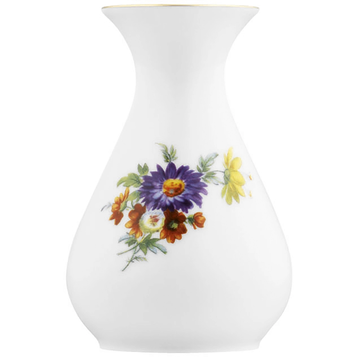 Porcelanowy wazon o wysokości 8.2cm ozdobiony kolorowymi kwiatami i złotym brzegiem z kolekcji GIFTWARE BUNTE BLUMEN. FÜRSTENBERG oferuje szeroki wybór ekskluzywnych prezentów i dekoracji do nowoczesnych wnętrz, obejmujący wazony, miski i świeczniki. Bez względu na to, czy wybierzesz klasycznie białą porcelanę czy zdobioną, te produkty są zawsze eleganckie i ponadczasowe.