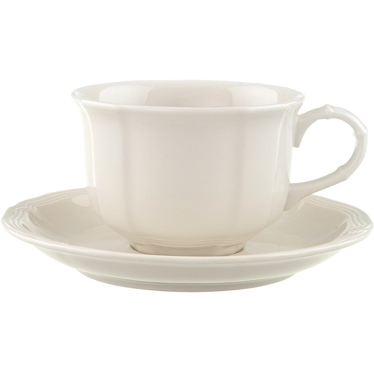 Filizanka do herbaty ze spodkiem z kolekcji Manoir. Kolekcja Manoir to synonim ponadczasowej elegancji. Piękny kształt o falowanych krawędziach połączony z białą porcelaną sprawia, że ten serwis sprawdzi się przy każdej okazji. Skromny wygląd pozwala na niezliczone możliwości aranżacji stołu w zależności od uroczystości - doskonały do codziennego użytku, a także na świąteczne posiłki z rodziną. Celebruj wspólne chwile z ponadczasową kolekcją Manoir!