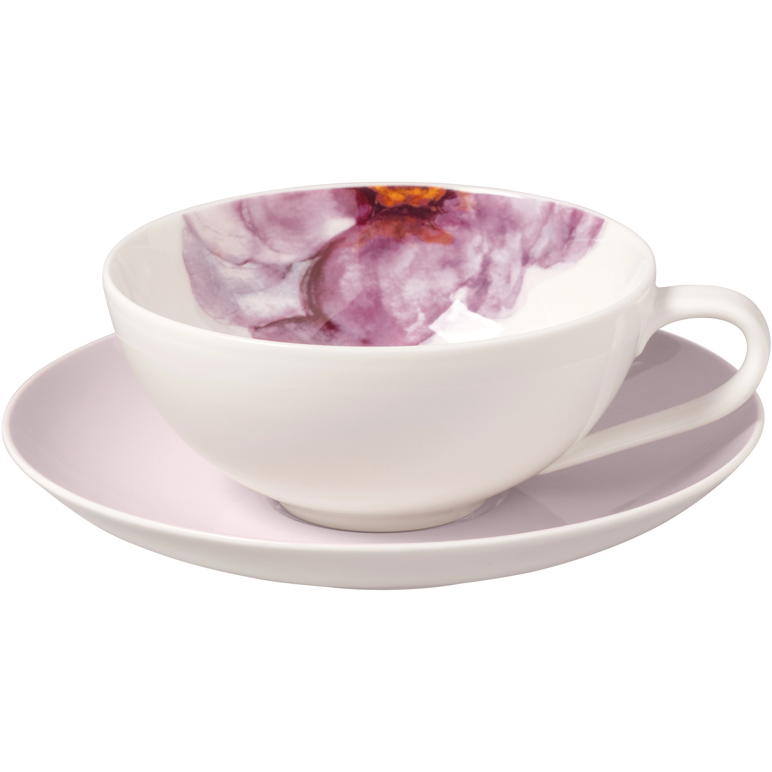 Filiżanka do herbaty ze spodkiem z kolekcji Rose Garden od Villeroy&Boch. Kolekcja Rose Garden przenosi nas do romantycznych ogrodów wypełnionych kwitnącą zielenią i różnorodnymi kwiatami. Biała porcelana premium została ozdobiona delikatnymi akwarelowymi odcieniami i misternymi liniami, które tworzą romantyczną całość. Motywem przewodnim są kwiaty w stopniowanych odcieniach różu, lilii i bieli. Nowoczesna, a jednocześnie urocza seria, która doskonale wpisuje się w koncepcję mix & match - połączysz ją bez problemu z innymi kolekcjami, np. Manufature Rock tworząc nietypowe i ekspresyjne kombinacje na swoim stole. Przenieś się do różanych ogrodów i poczuj zapach pachnących kwiatów z nową kolekcją Villeroy&Boch! Dla uzyskania najlepszego efektu połącz porcelanę z dedykowanymi akcesoriami - szkłem i akcesoriami z kolekcji Rose Garden Home.