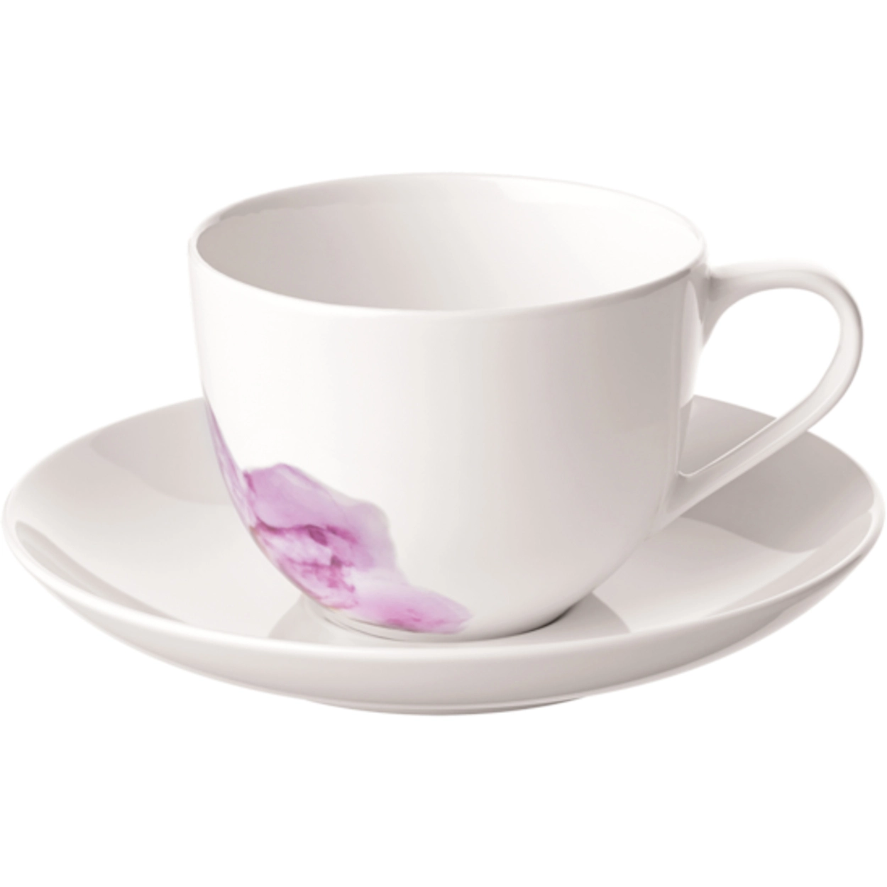 Filiżanka do kawy ze spodkiem z kolekcji Rose Garden od Villeroy&Boch. Kolekcja Rose Garden przenosi nas do romantycznych ogrodów wypełnionych kwitnącą zielenią i różnorodnymi kwiatami. Biała porcelana premium została ozdobiona delikatnymi akwarelowymi odcieniami i misternymi liniami, które tworzą romantyczną całość. Motywem przewodnim są kwiaty w stopniowanych odcieniach różu, lilii i bieli. Nowoczesna, a jednocześnie urocza seria, która doskonale wpisuje się w koncepcję mix & match - połączysz ją bez problemu z innymi kolekcjami, np. Manufature Rock tworząc nietypowe i ekspresyjne kombinacje na swoim stole. Przenieś się do różanych ogrodów i poczuj zapach pachnących kwiatów z nową kolekcją Villeroy&Boch! Dla uzyskania najlepszego efektu połącz porcelanę z dedykowanymi akcesoriami - szkłem i akcesoriami z kolekcji Rose Garden Home.