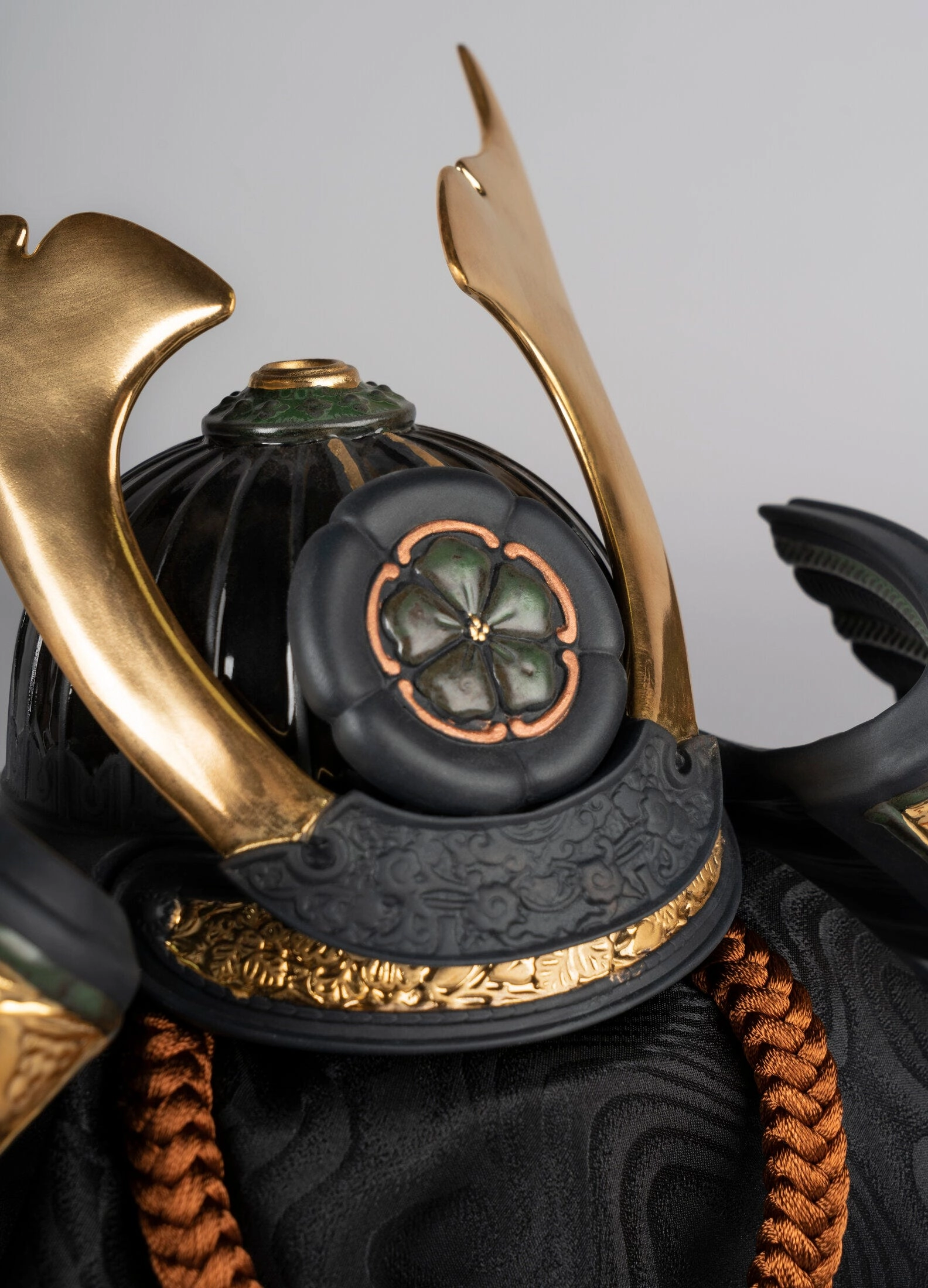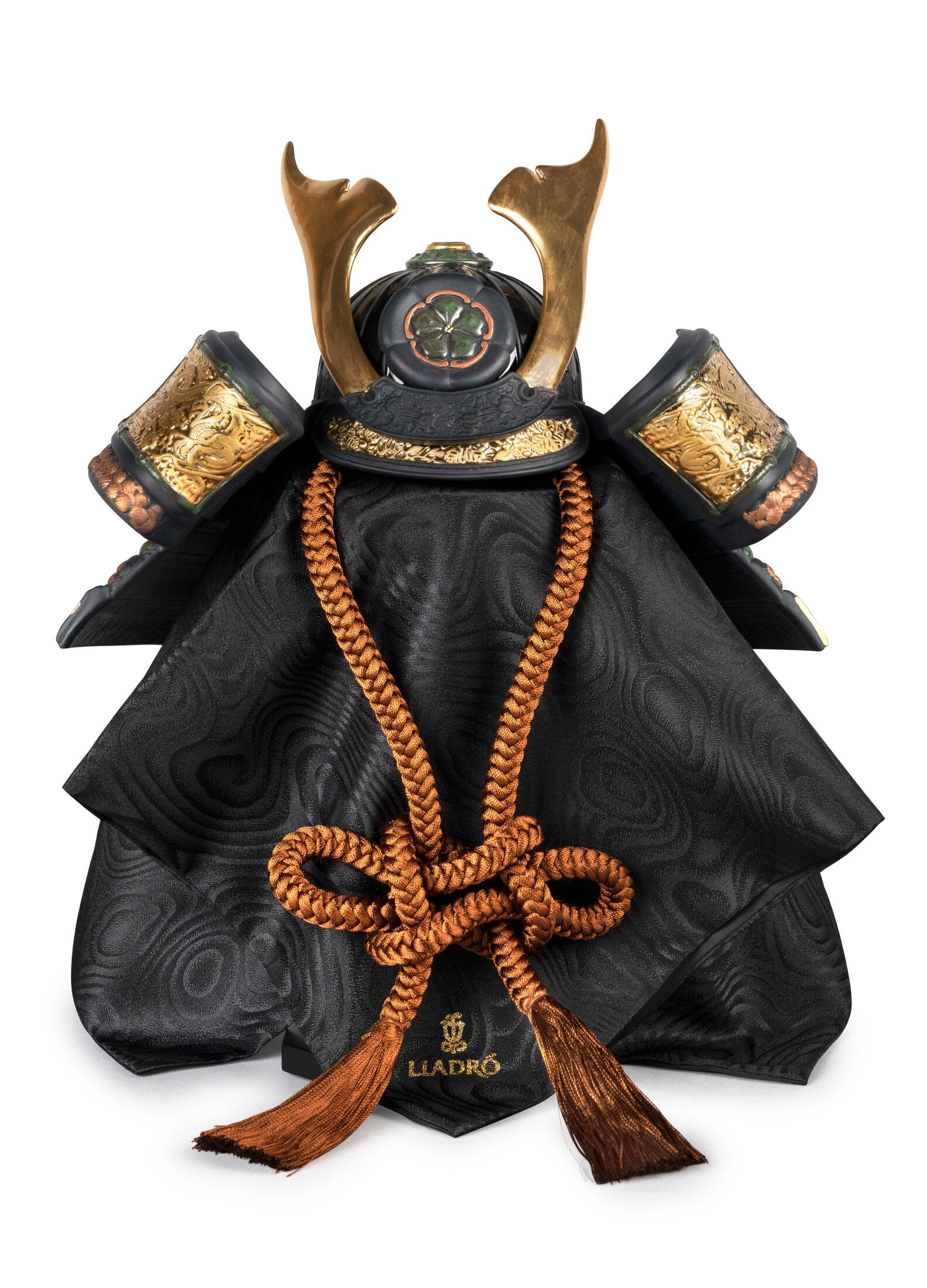 Dzieło inspirowane hełmami starożytnych samurajów, jednym z najbardziej charakterystycznych elementów ich stroju. Wykonane z czarnej matowej porcelany o złotym połysku i bogato zdobione wykwintnymi zdobieniami, ta figura to hołd dla tradycyjnej kultury japońskiej. Doskonała jako ekskluzywny element kolekcji bądź wyjątkowy prezent dla miłośników historii i sztuki Dalekiego Wschodu.