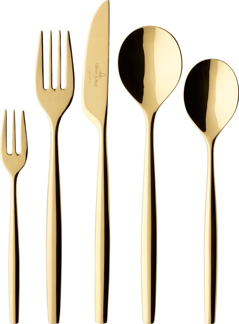 Zestaw pozłacanych sztućców z kolekcji MetroChic d'Or Villeroy & Boch. To połączenie miejskiej nowoczesności z czystą elegancją. Linie wzoru są delikatne, zaokrąglenia subtelne, a proporcje zrównoważone, tworząc wyjątkowy design, który doskonale komponuje się z minimalistycznymi aranżacjami i nowoczesnym wystrojem wnętrz. Ten 30-elementowy komplet sztućców na 6 osób to esencja luksusu i funkcjonalności. Jest idealnym wyborem na różnorodne okazje, podnosząc prestiż każdego przyjęcia. Każdy element tego zestawu został starannie zaprojektowany i wykonany z najwyższej jakości materiałów, aby zapewnić nie tylko estetykę, ale również trwałość i wygodę użytkowania.