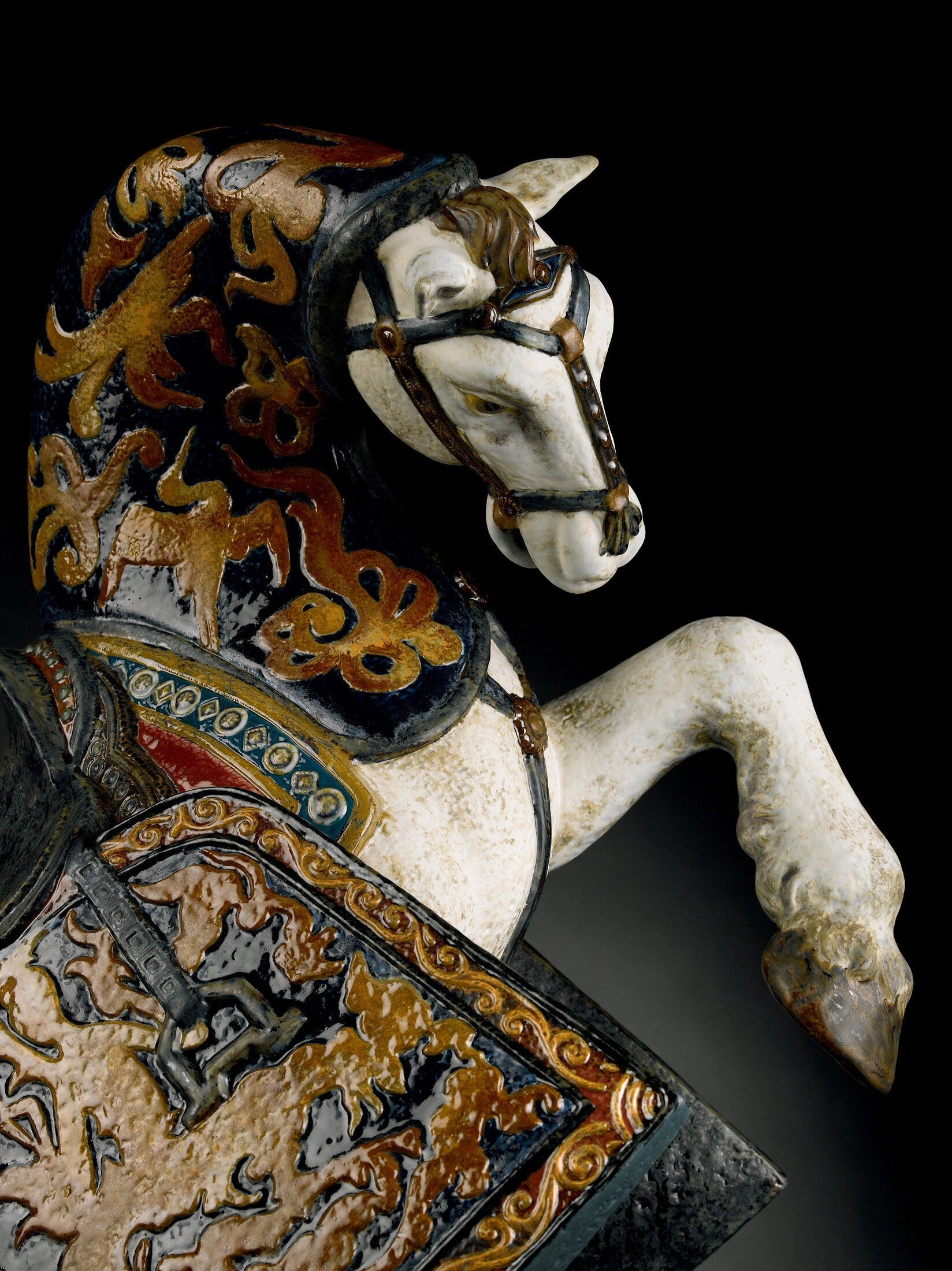 - Limitowana rzeźba orientalnego konia bojowego z matowej białej porcelany.