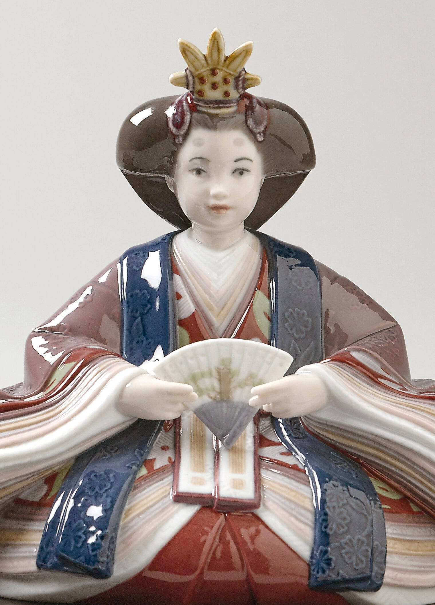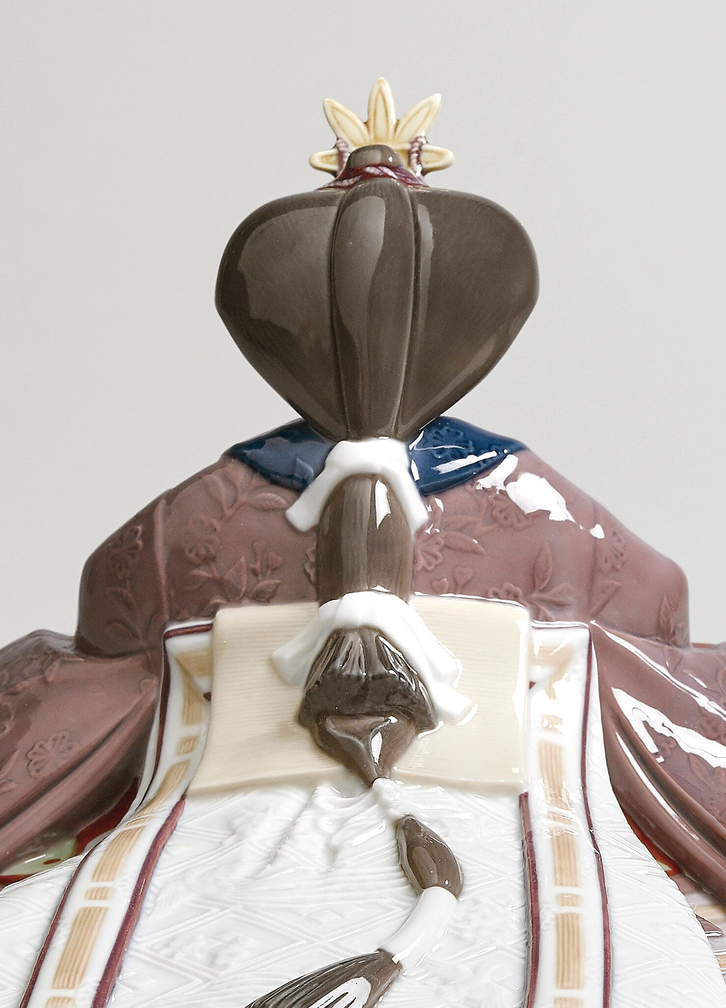 W dniu Hina Matsuri, 3 marca, tradycyjnie obdarowuje się dziewczęta lalkami Hina, tworząc kompozycję Hina ningyo, symbolizującą szczęśliwe życie. Ta porcelanowa figurka wyróżnia się dziecięcymi rysami postaci, wykonanymi z glazurowanej porcelany. Precyzyjne detale kimona odzwierciedlają stroje noszone przez cesarzy w epoce Heian. Unikalny egzemplarz ręcznie wykonany w Hiszpanii, stanowi wyjątkowy prezent z okazji Hina Matsuri.