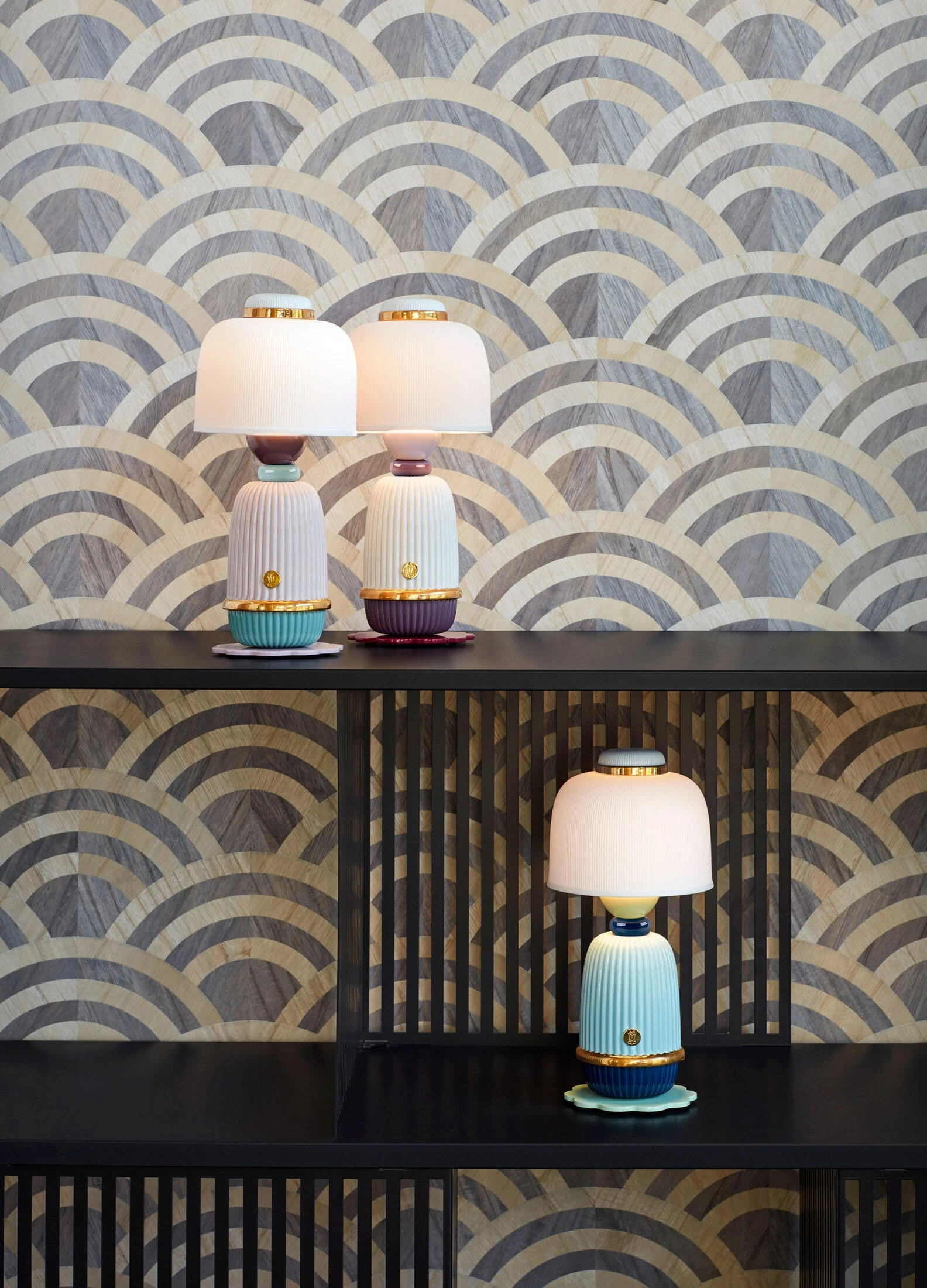 - Bezprzewodowa lampa stołowa inspirowana japońskimi lalkami w wersji różowej.