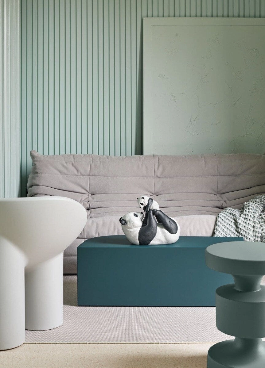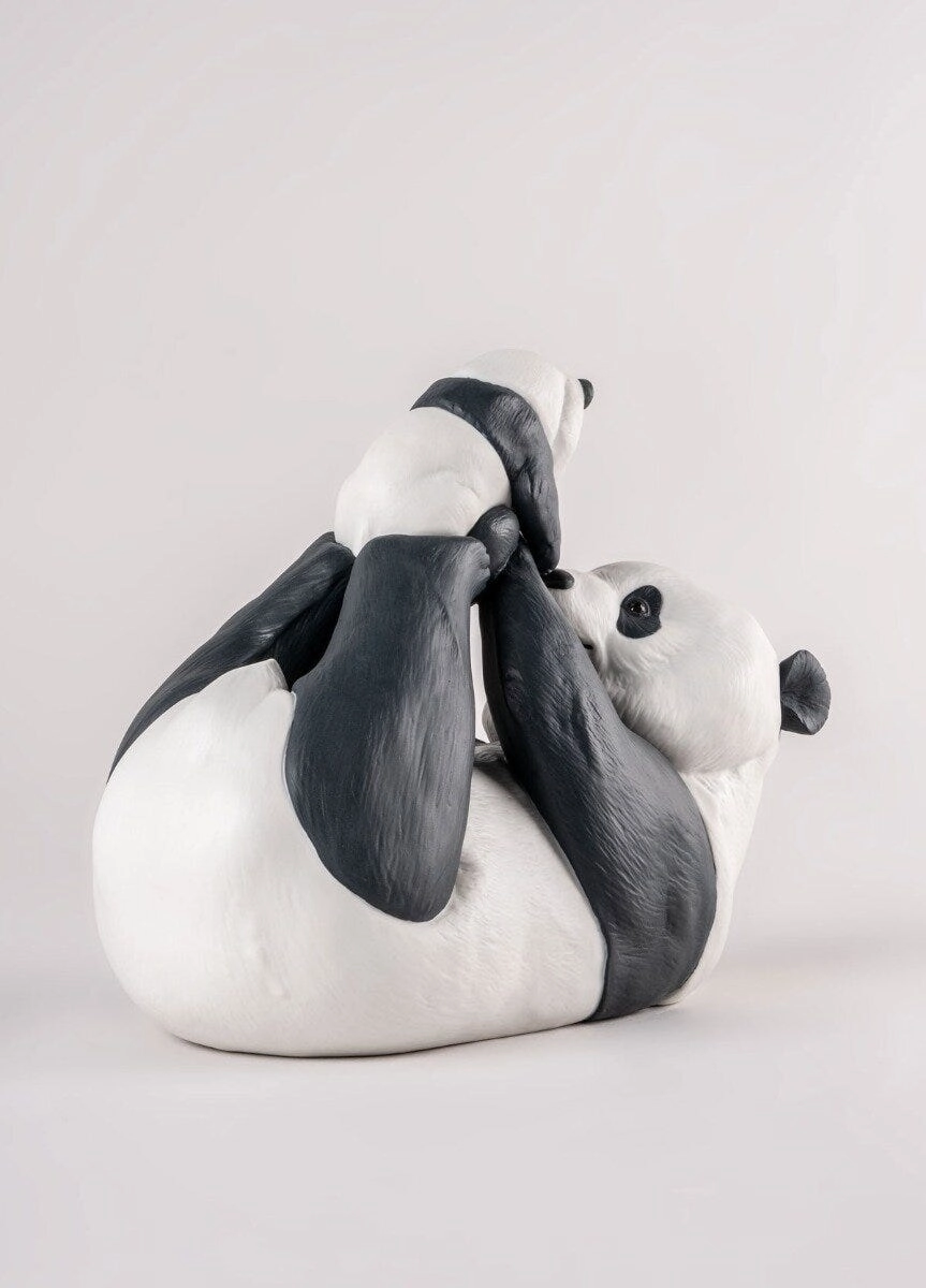 - Porcelanowa figurka przedstawiająca zabawę mamy pandy z jej młodym.