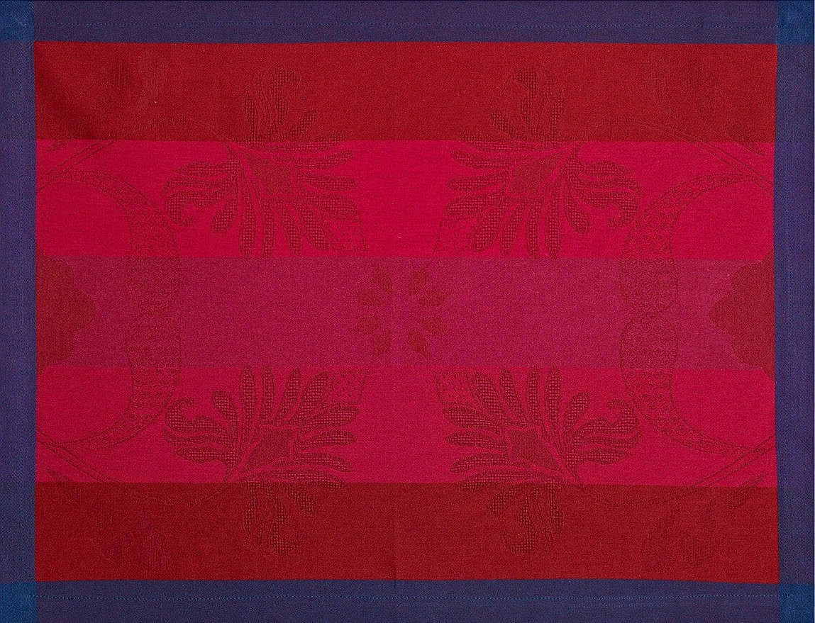 Obrusy i dodatki inspirowane indyjskimi haftami i orientalnym wzornictwem. Wzbogacony o trzy różne sploty i wyszukaną kolorystykę. Kolekcja Bengale Bengali i Tiger nawiązują do jedwabi, sari i rozmaitych, kolorowych i bardzo aromatycznych przypraw. Piękny odcień intensywnej czerwieni i maliny połączony z niebieskim zakończeniem.