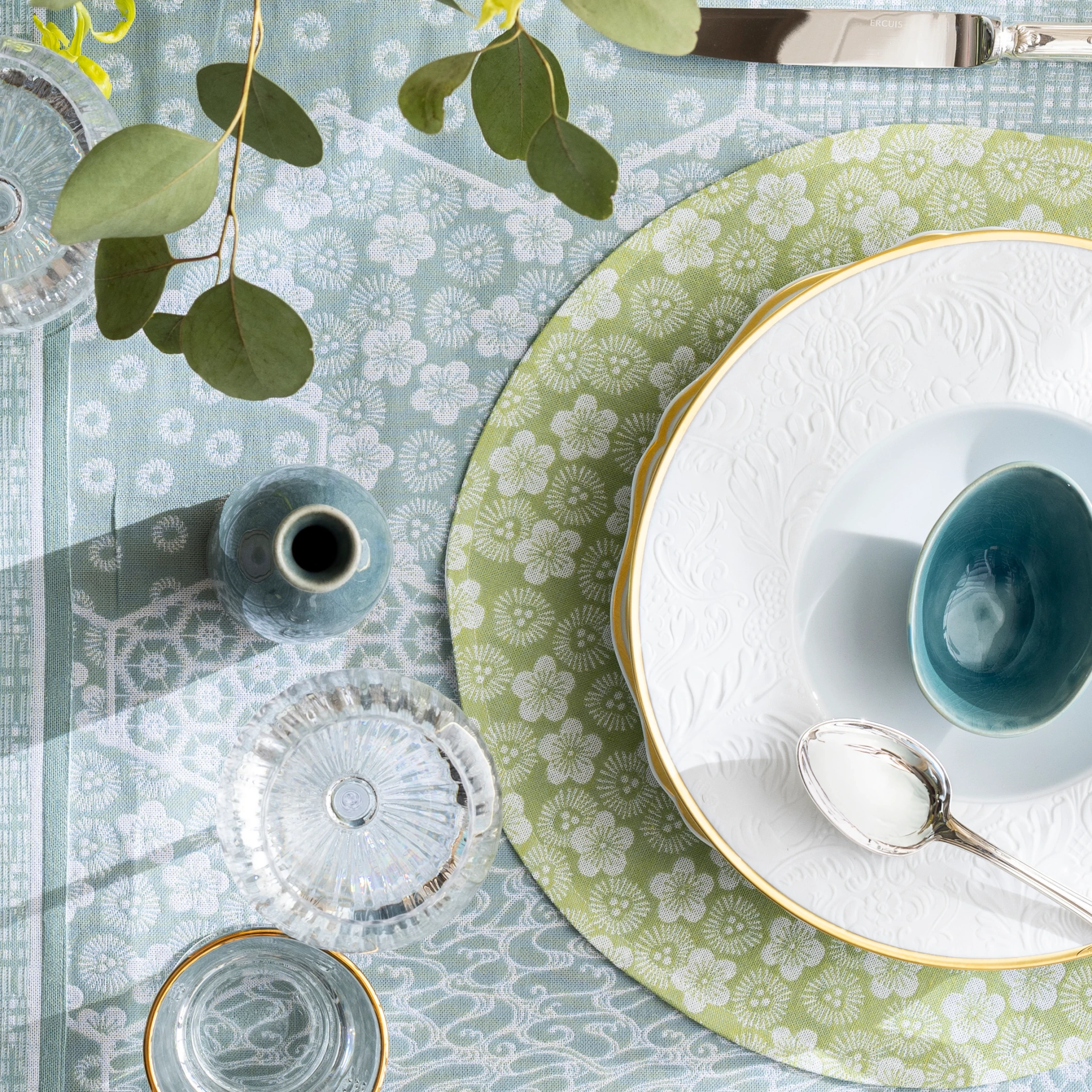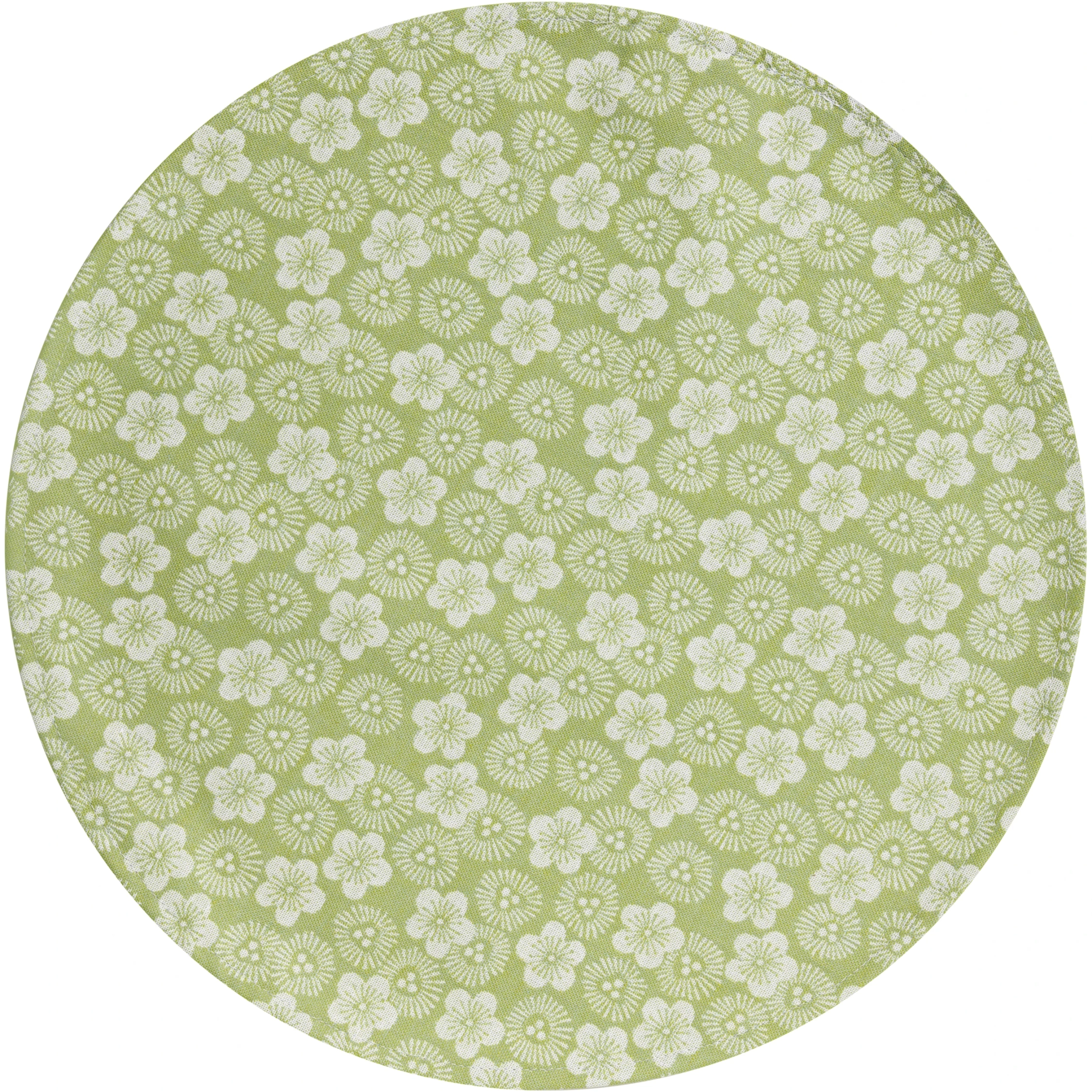 - Bawełniana mata plamoodporna Ø 38 cm w kolorze zielonym z kolekcji Wagara od Le Jacquard Francais.