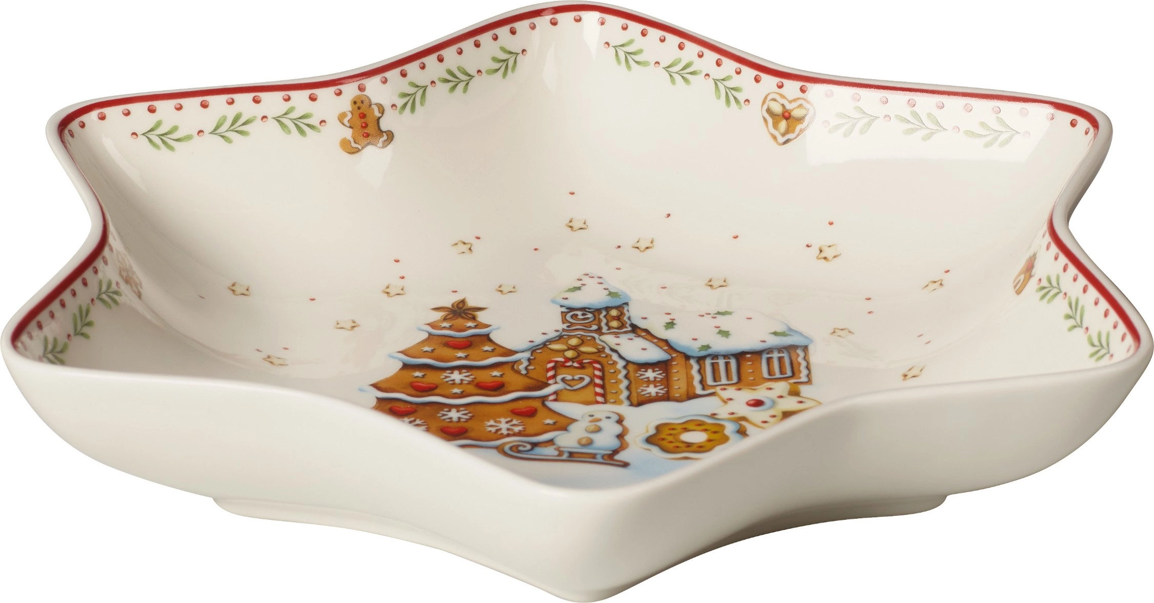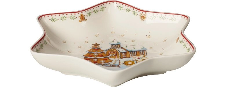 Porcelanowa, średnia miska w kształcie gwiazdki z motywem piernikowej wioski z kolekcji Winter Bakery Delight. Kolekcja Winter Bakery Delight to świąteczna kolekcja, która pozwala w wyjątkowy sposób cieszyć się adwentową kawą, herbatą czy bożonarodzeniowymi przysmakami. Rozsmakuj się w pysznych pierniczkach, herbatnikach czy gorącej czekoladzie z porcelaną Premium marki Villeroy&Boch. Niezwykłe kształty naczyń - gwiazdka czy choinka przywołują wspomnienia rodzinnych i ciepłych świąt. Nowy rok to nowe miski, talerze czy filiżanki, których możesz użyć w piekarniku oraz nowe pojemniki na herbatniki czy ciasteczka. Daj się oczarować piękną porcelaną w tegoroczne święta z kolekcją Winter Bakery Delight.