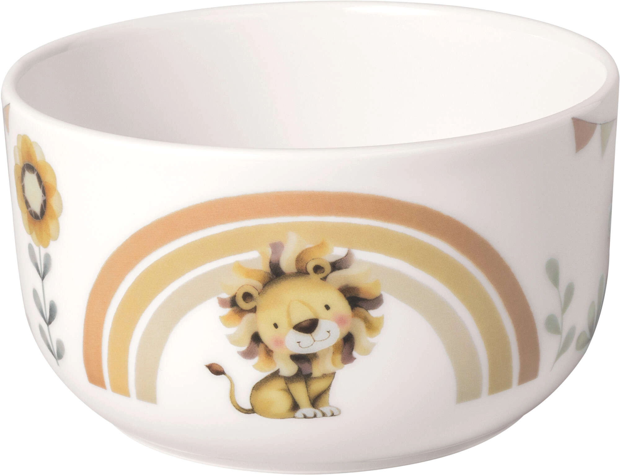 Miseczka porcelanowa do serwowania kaszki, deseru czy zupki z kolekcji Roar Like A Lion. Kolekcja Roar Like A Lion to nowa odsłona porcelany stworzonej z myślą o najmłodszych! W tym wydaniu główną rolę odgrywa uroczy lew, tęcza, małpka i kwiaty - utrzymany w trendzie i kolorystyce boho. Kolekcje dziecięce są specjalnie dostosowane pod względem rozmiarów, kształtów i materiałów dla maluchów! Zastawa składa się z talerzy płaskich i głębokich, miseczki, kubeczków w dwóch rozmiarach i sztućców. Od teraz każdy posiłek będzie także świetną zabawą!