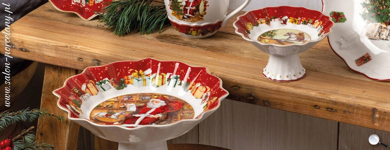 Miska na nóżce Prezenty z kolekcji Toy's Fantasy. Jedna z wielu świątecznych kolekcji marki Villeroy&Boch pozwoli wprowadzić do Twojego wnętrza cudowny, bożonarodzeniowy nastrój. Toy's Fantasy ukazuje przede wszystkim typowe dla świąt motywy w pięknych odcieniach czerwieni, bieli i zieleni. Świąteczne naczynia pozwalają na niezwykłe serwowanie ciast, napojów czy potraw. Świąteczne talerze, pojemne kubki czy miski sprawią, że te święta będą wyjątkowe i piękne. Wprowadź świąteczną atmosferę do swojego domu dzięki połączeniu różnych kolekcji bożonarodzeniowych Villeroy&Boch lub obdaruj nimi swoich najbliższych.