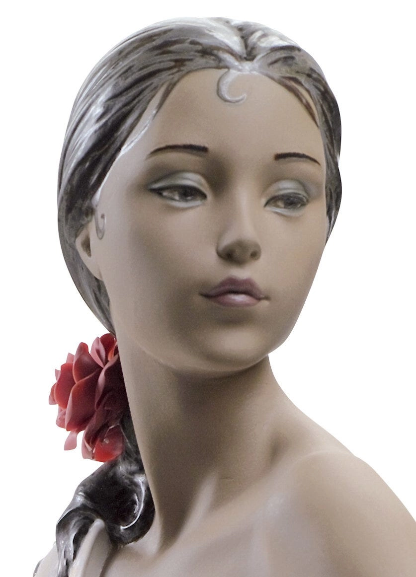 - Kamionkowa figurka przedstawiająca nagą kobietę z szalem i czerwonym kwiatem na głowie.