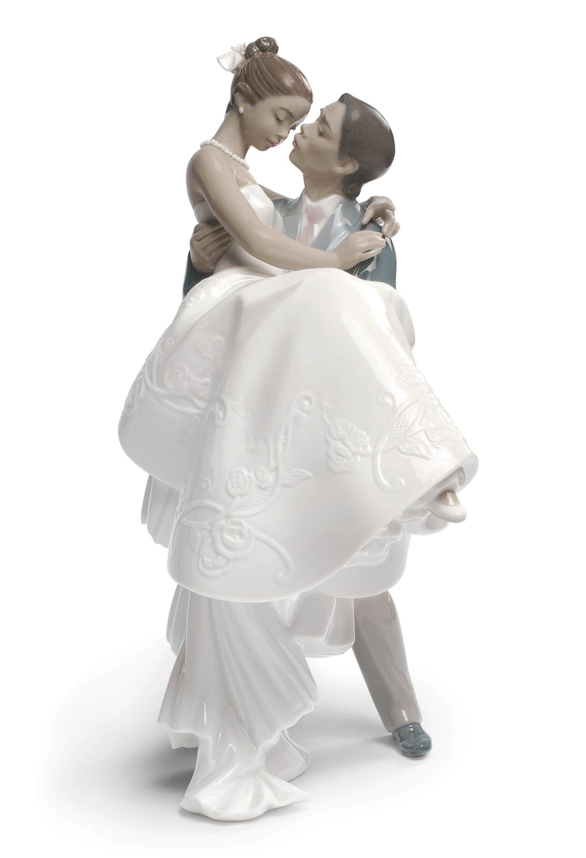 - Porcelanowa figurka przedstawiająca pana młodego niosącego na rękach swoją ukochaną.