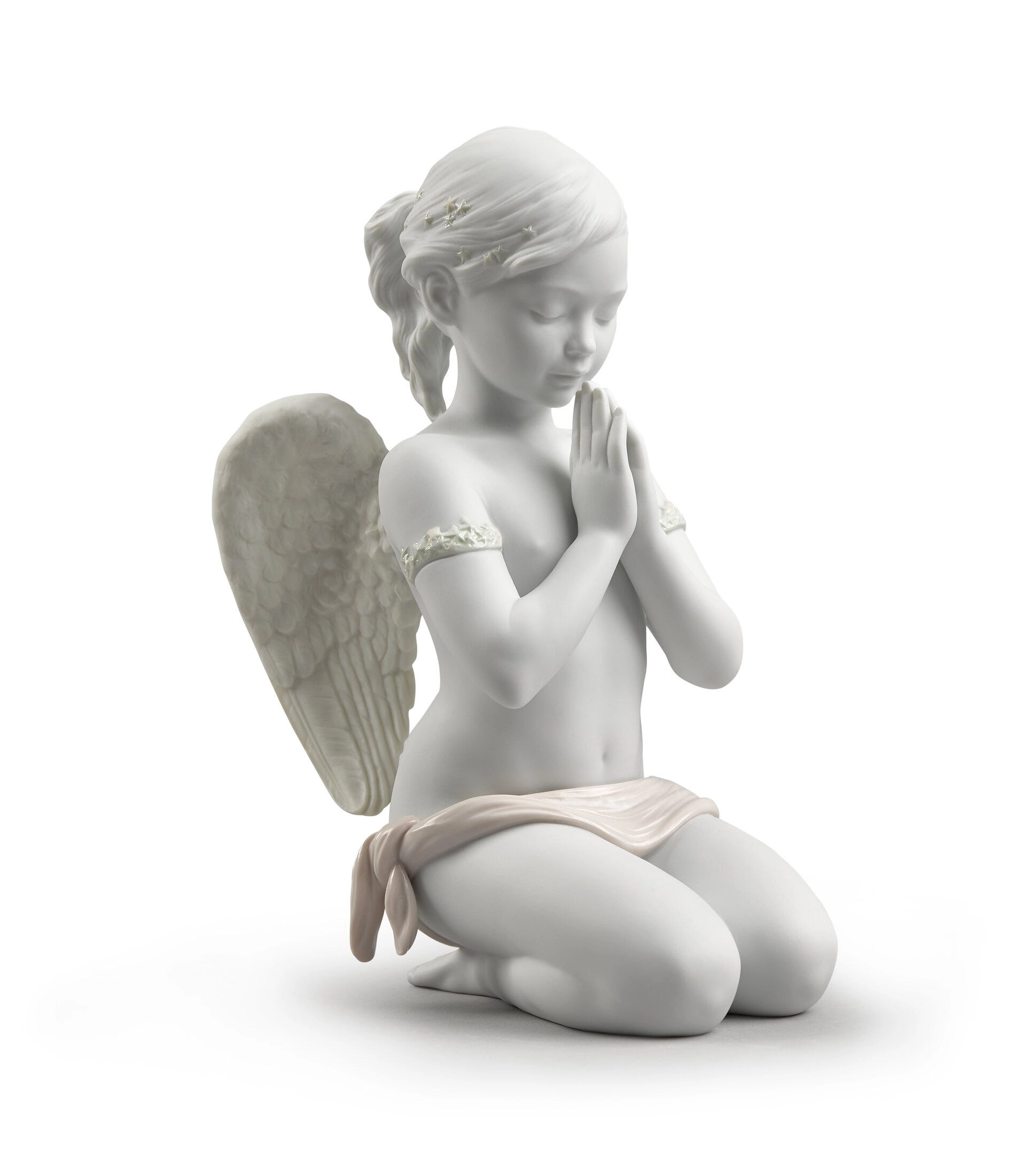 - Figurka modlącej się dziewczyny-anioła z pięknymi skrzydłami z matowej porcelany.