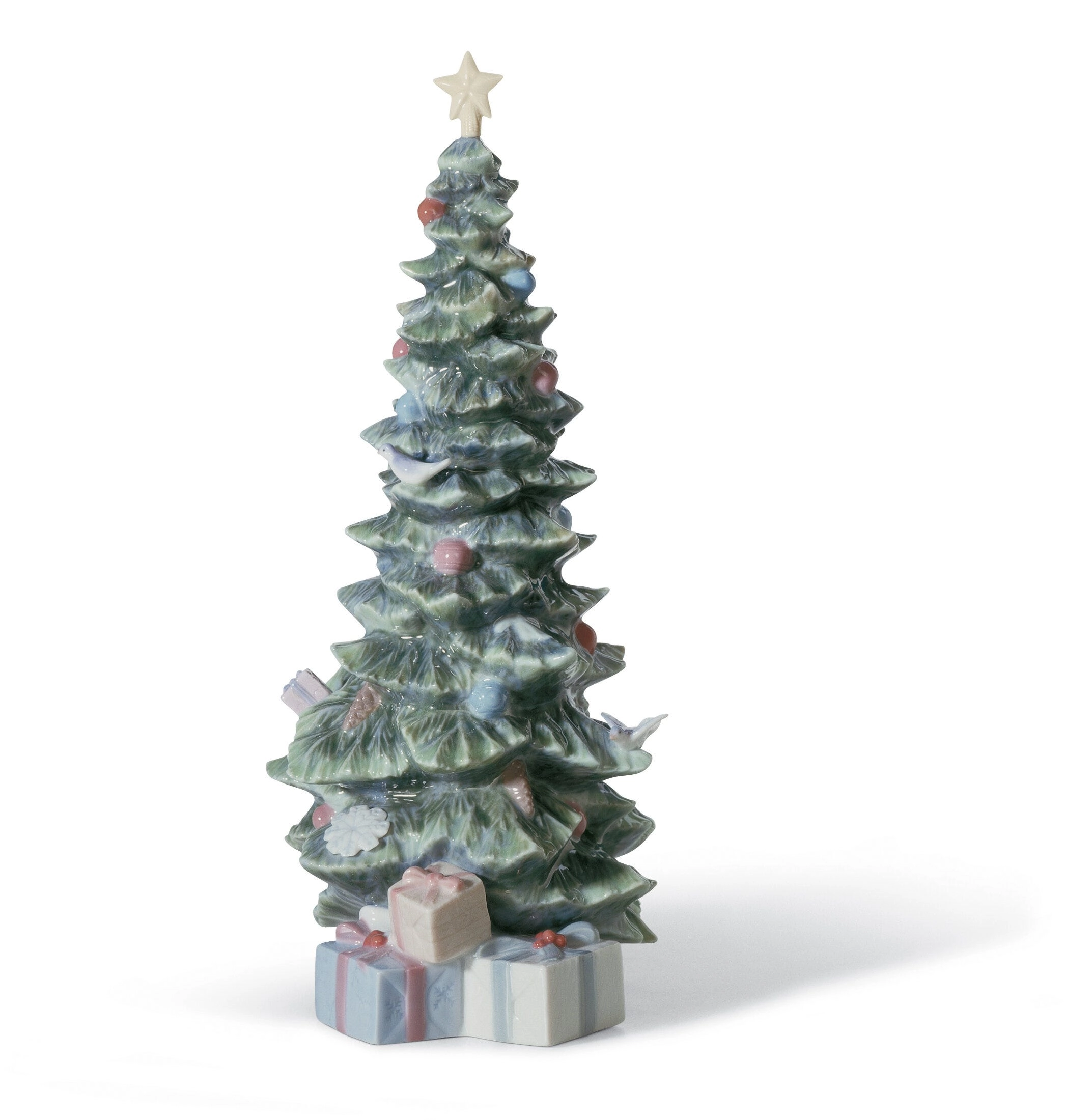 • Porcelanowa figurka ozdobionej choinki z prezentami.