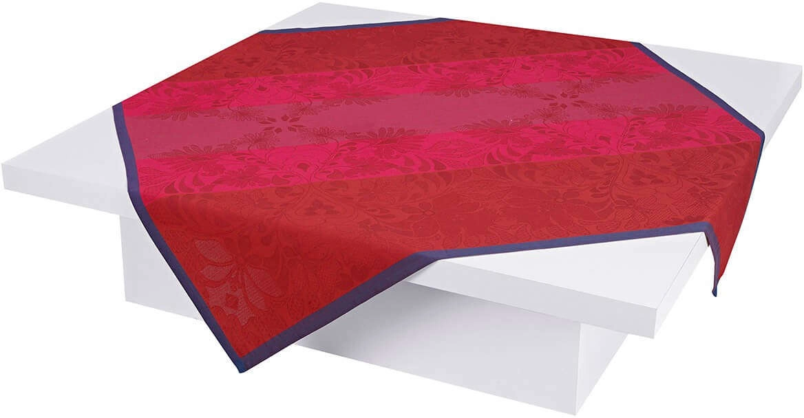 Obrusy i dodatki inspirowane indyjskimi haftami i orientalnym wzornictwem. Wzbogacony o trzy różne sploty i wyszukaną kolorystykę. Kolekcja Bengale Bengali i Tiger nawiązują do jedwabi, sari i rozmaitych, kolorowych i bardzo aromatycznych przypraw. Piękny odcień intensywnej czerwieni i maliny połączony z niebieskim zakończeniem.
