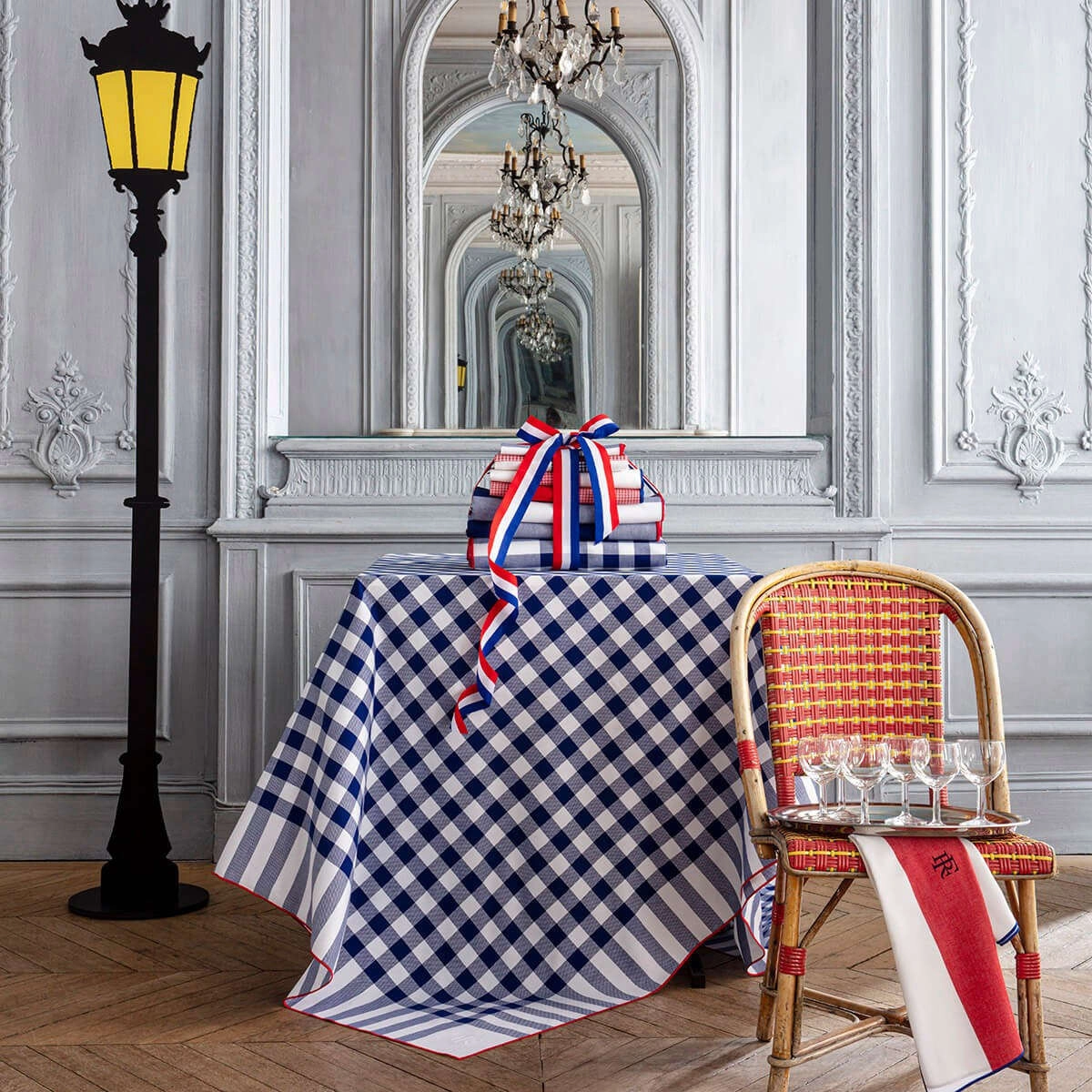 Kolekcja Elysée nawiązuje do francuskich guinguettes i typowych pikników! Zainspiruj się francuskim art-de-vivre i wprowadź trochę francuskiego bistro do swojego wnętrza. Precyzyjny wzór i szlachetny materiał. Kontrastowy nadruk i pleciony splot sprawią, że stół zyska energii i wyrafinowania. Posiada subtelnie wkomponowane logo "Republiki Francuskiej".