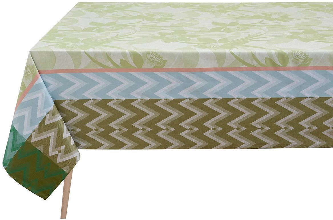 Kolekcja La Vie en Vosges, jak sama nazwa wskazuje, nawiązuje do przepięknych i malowniczych krajobrazów regionów Vosges. Świeże kolory zostały wzbogacone w duże, kwitnące żonkile oraz współczesną jodełkę w różnych odcieniach. Naturalność i powiem wiosny na Twoim stole! Wszystkie produkty z tej kolekcji zostały wykonane w 100% z bawełny czesanej z długimi włóknami, które gwarantują wygodę użytkowania i jakość. Plamoodporna wersja jest pokryta warstwą akrylu.