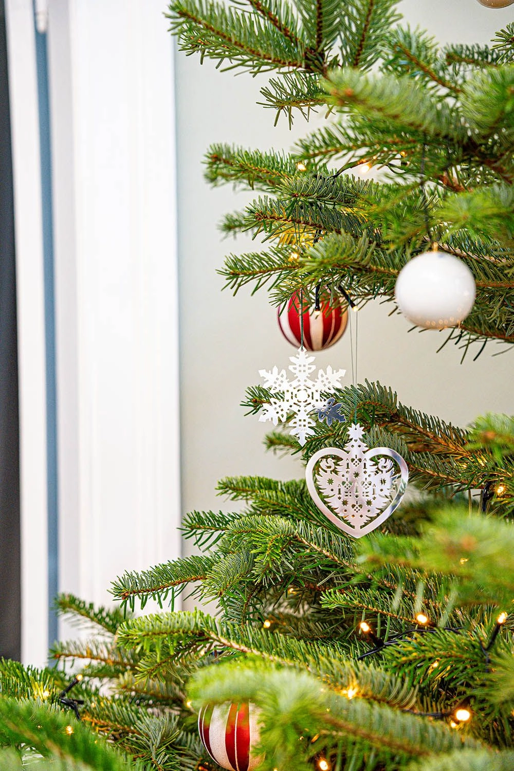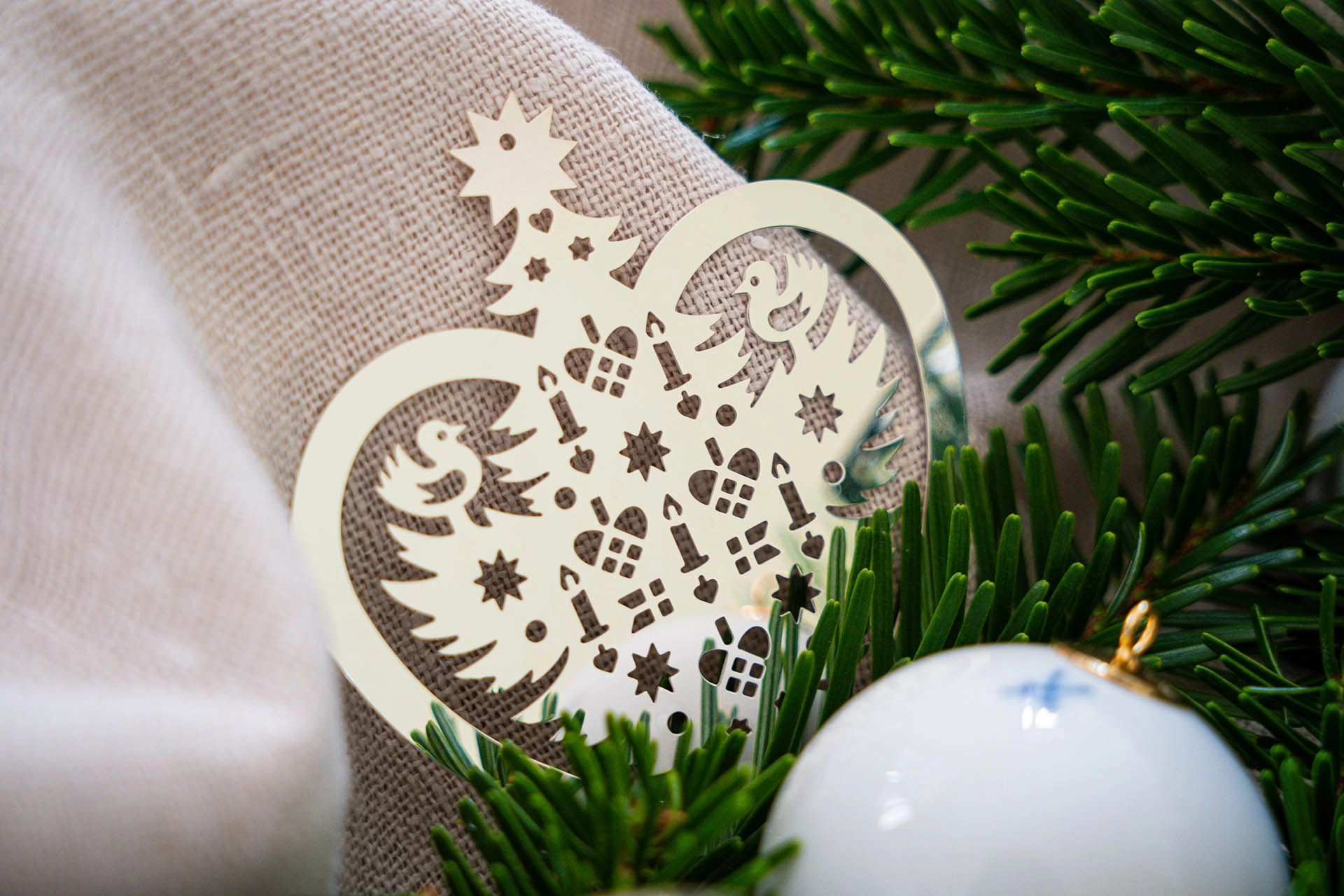 - Zawieszka świąteczna posrebrzana, przedstawiająca choinkę