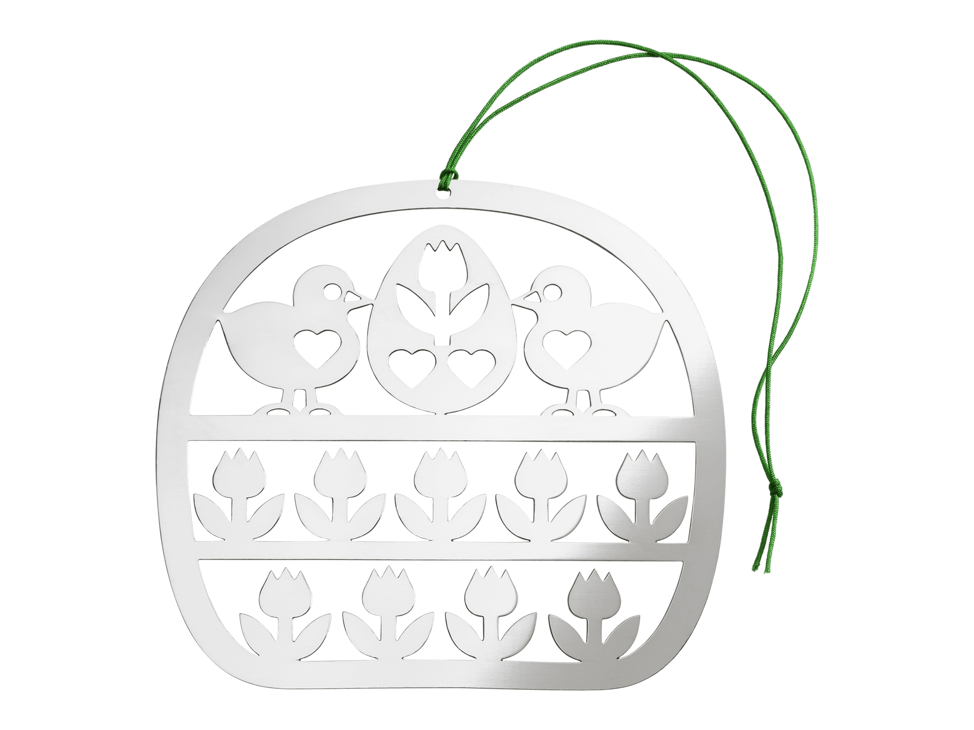 - Zawieszka wielkanocna posrebrzana, przestawiająca kurki i kwiaty