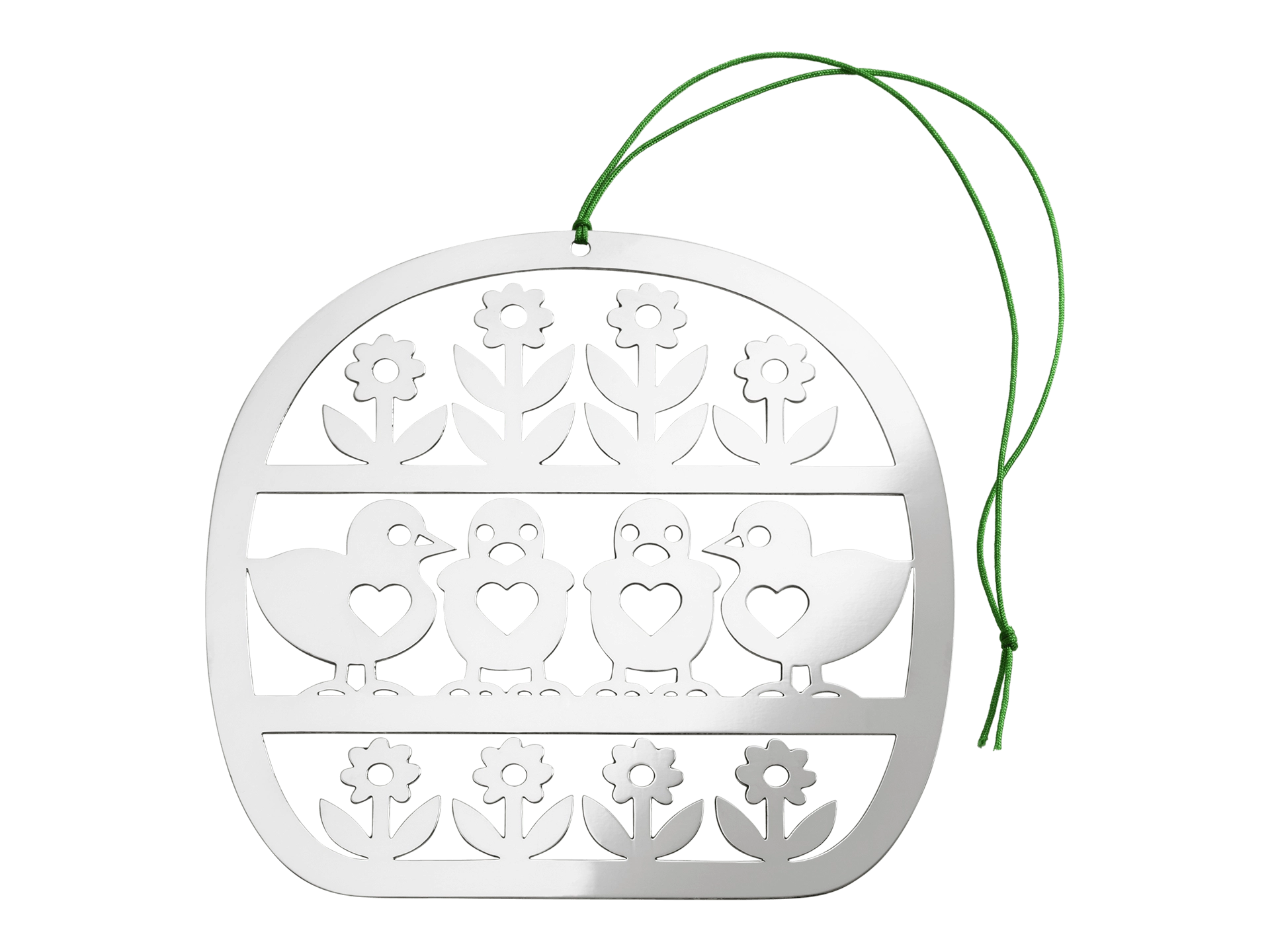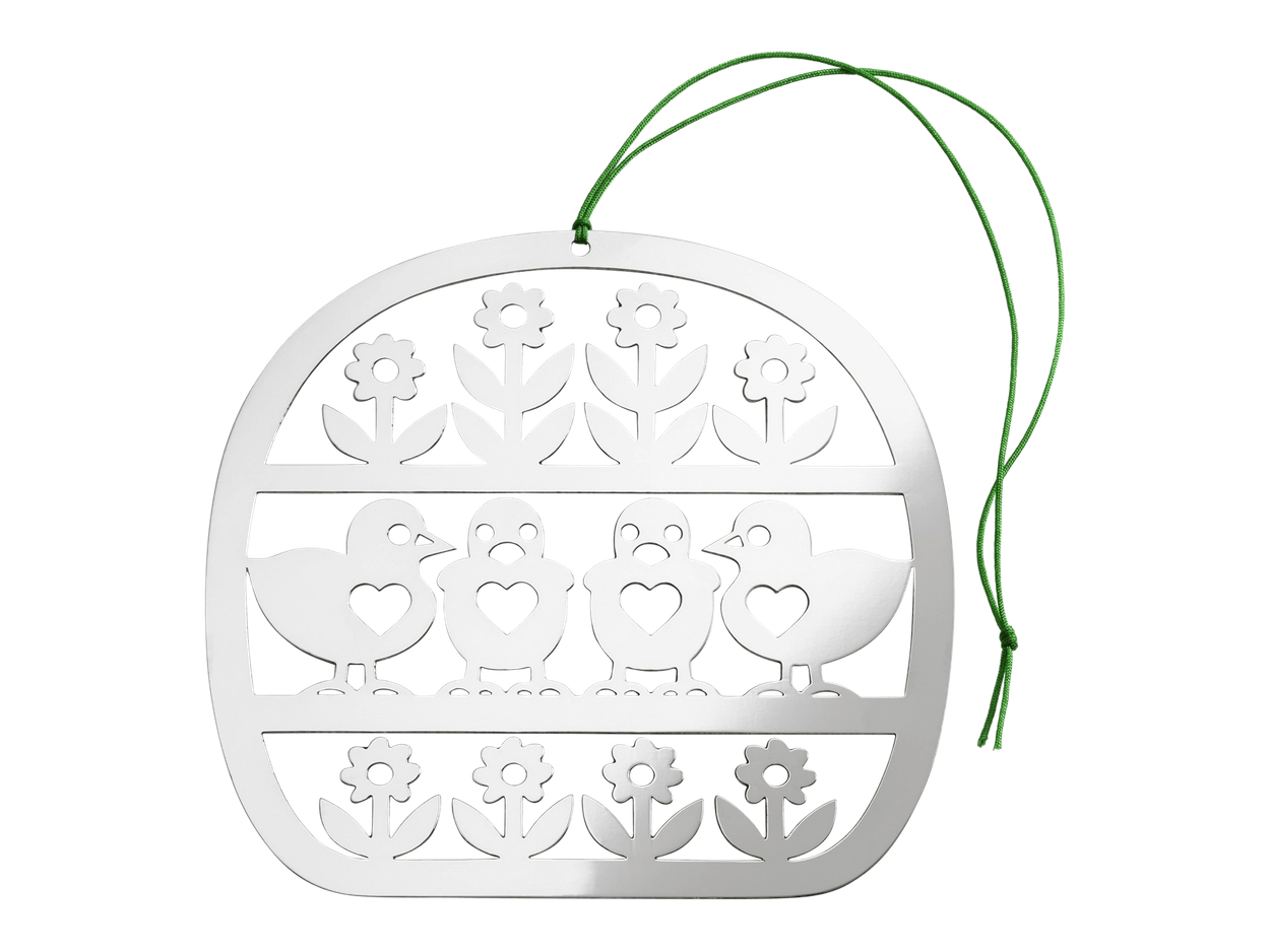 - Zawieszka wielkanocna posrebrzana, przestawiająca kurki i kwiaty