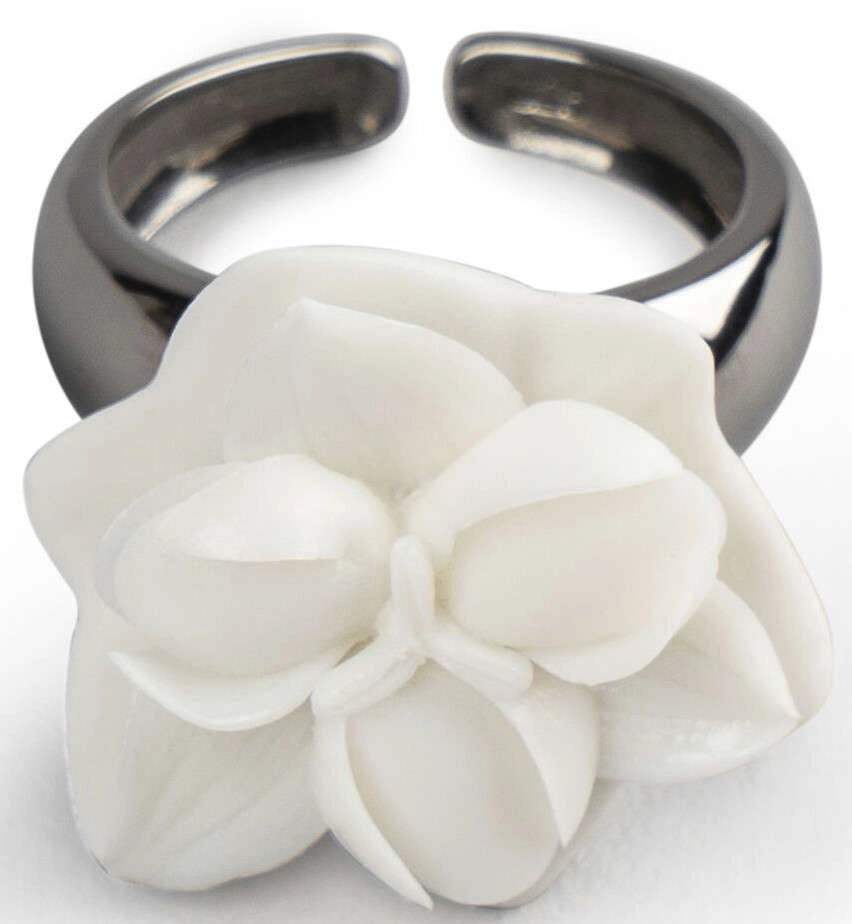 - Srebrny pierścionek z porcelanowym kwiatem w kolorze białym z kolekcji Orchid
