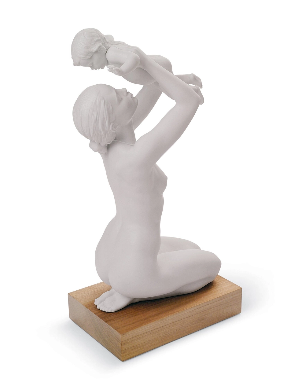 - Figurka matki podnoszącj swojego syna z białej, matowej porcelany.