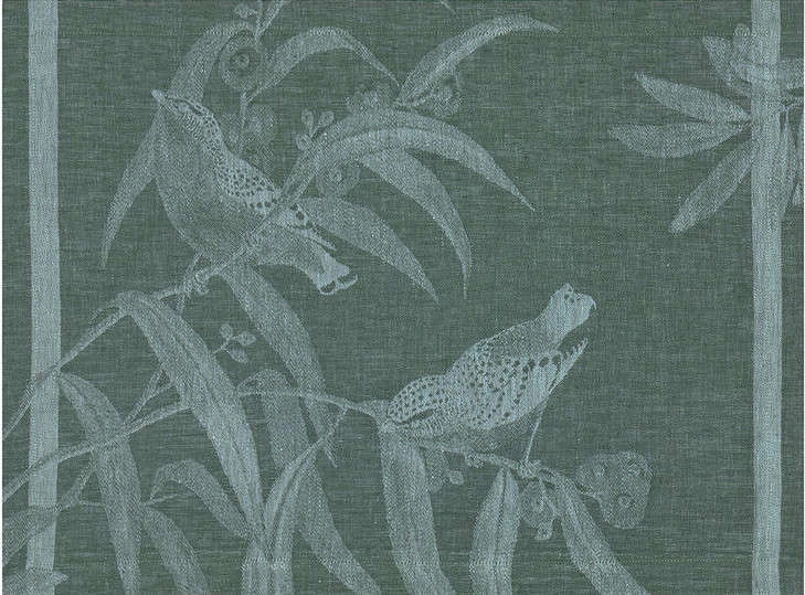 Kolekcja Voliere to wyrafinowane i harmonijne połączenie motywu roślinności i ptaków. Kolekcja powstała w wyniku współpracy Le Jacquard Francais z QUINSAI, co stanowi swojego rodzaju połączenie między pięknym wnętrzem a zastawą stołu. Owocem tej współpracy jest właśnie ta elegancka, wyrafinowana i stworzona z dbałością o każdy szczegół kolekcja Voliere - dostępna w 3 różnych odcieniach. Do produkcji użyto specjalnych długich i mocnych lnianych włókien o gramaturze 205 g/m².