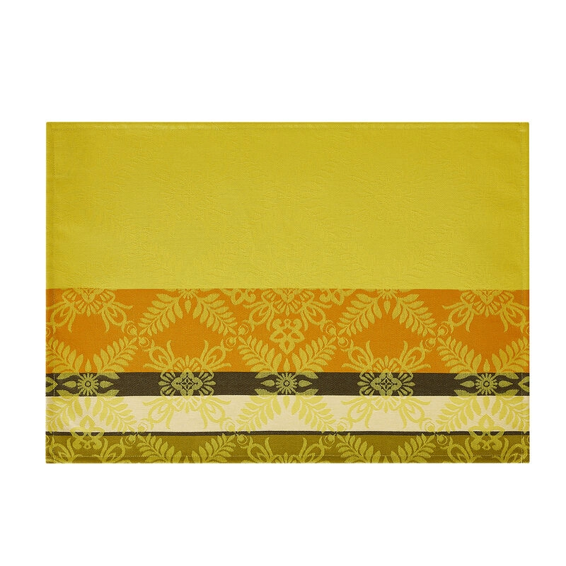 Bawełniana mata powlekana z kolekcji Mumbai Yellow. Zewnętrzna warstwa akrylu chroni przez zabrudzeniami oraz wchłanianiem płynów. Umożliwia także szybkie czyszczenie przy użyciu delikatnej, wilgotnej gąbki. Dla optymalnego komfortu podkładki posiadają antypoślizgową powierzchnię, która uniemożliwia przesuwanie się podczas posiłku. Kolekcja Mumbai przeniesie Cię prosto do Indii, gdzie elegancja miesza się z duchowością, a praktyka łączy ze stylem... Daj się przenieść do serca Indii, gdzie znajdziesz stoły zastawione soczystymi ananasami, granatami, kwiatem lotosu i bujnymi liśćmi.