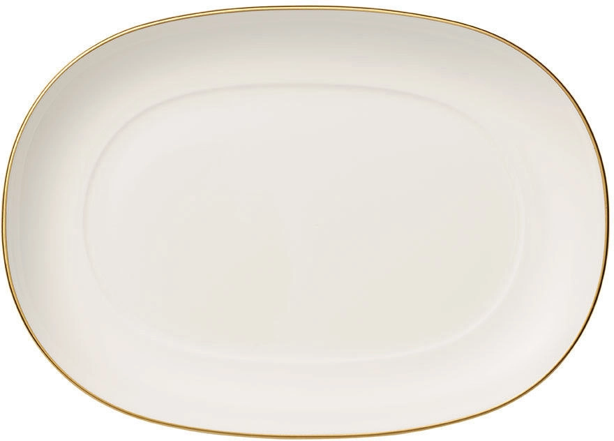 Półmisek na pikle/Spodek sosjerki z kolekcji Anmut Gold. Kolekcja Anmut Gold to czysta elegancja i estetyka połączona z łagodnymi, harmonijnymi kształtami. Czysto biała porcelana najwyższej jakości została wzbogacona o ręcznie malowane linie ze złota, które nadają całej kolekcji szlachetności. Wykorzystanie ponadczasowego piękna złota sprawia, że porcelana nabiera ekspresyjnego wyglądu i niezwykłego blasku. Doskonała na wyjątkowe okazje, ale nie tylko - sprawdzi się także przy codziennych, wspólnych posiłkach. Zachwyci szczególnie tych, którzy cenią sobie połączenie elegancji i najwyższej jakości. Połącz kolekcję Anmut Gold z kieliszkami i innymi dodatkami, które nadadzą Twojej zastawie stołowej jeszcze większego blasku!