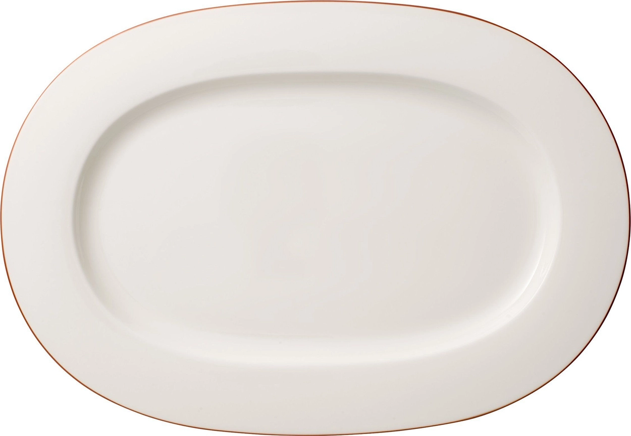 Półmisek owalny z kolekcji Anmut Rosewood. Kolekcja Anmut Rosewood to kwintesencja elegancji i wysokiej jakości. Połączenie czysto białej, klasycznej porcelany z subtelnym różowoczerwonym dekorem nadaje wyrafinowanego wyglądu icharakteru. Cała kolekcja wyróżnia się niezwykłym blaskiem oraz ekspresyjnym designem. Doskonale nadaje się do codziennego użytku, jak również na specjalne okazje. Zachwyca prostotą połączoną z luksusem. Połączenie kolekcji z kieliszkami z kolekcji Allegorie Premium Rosewood oczaruje Twoich gości i nada unikalny wygląd Twojej zastawie!