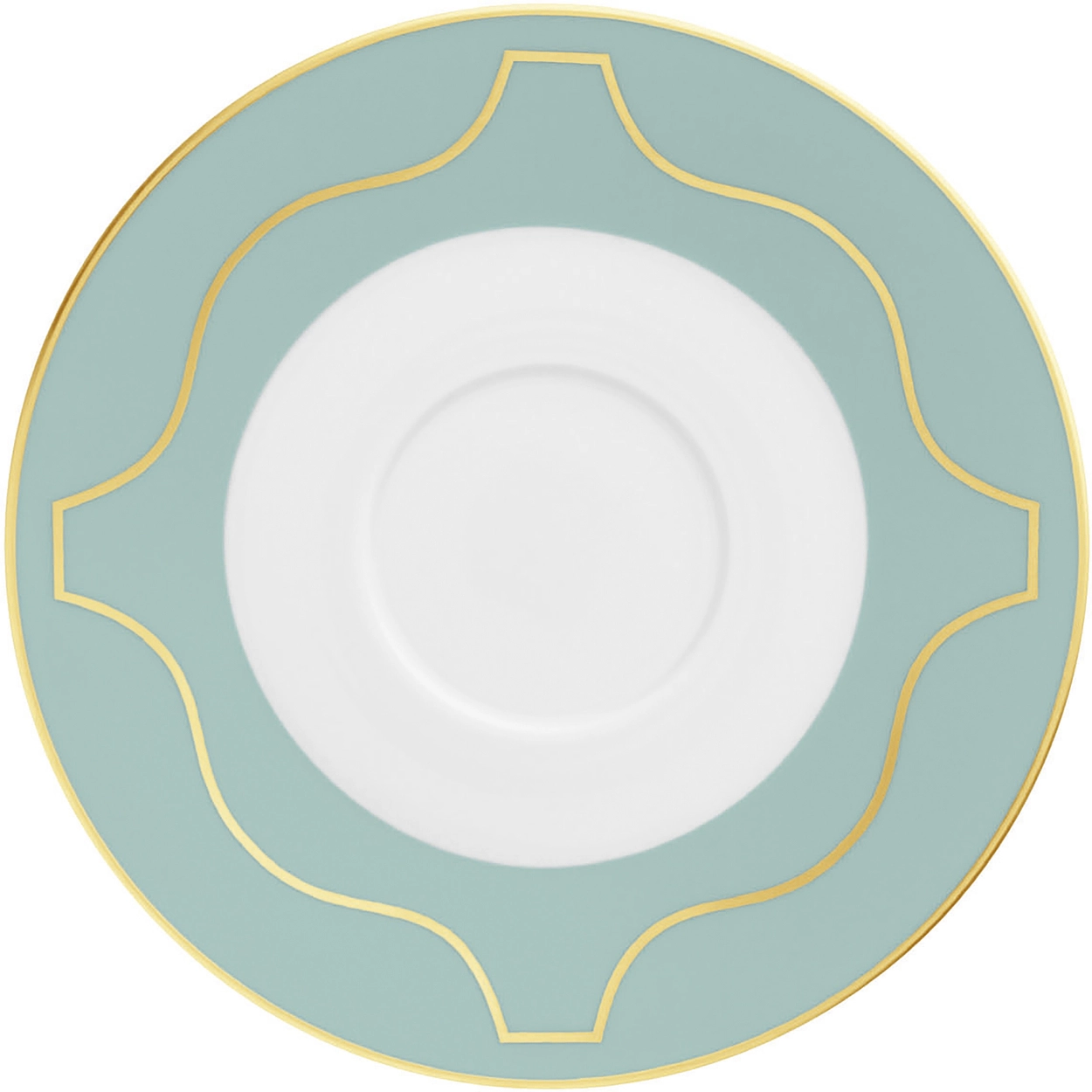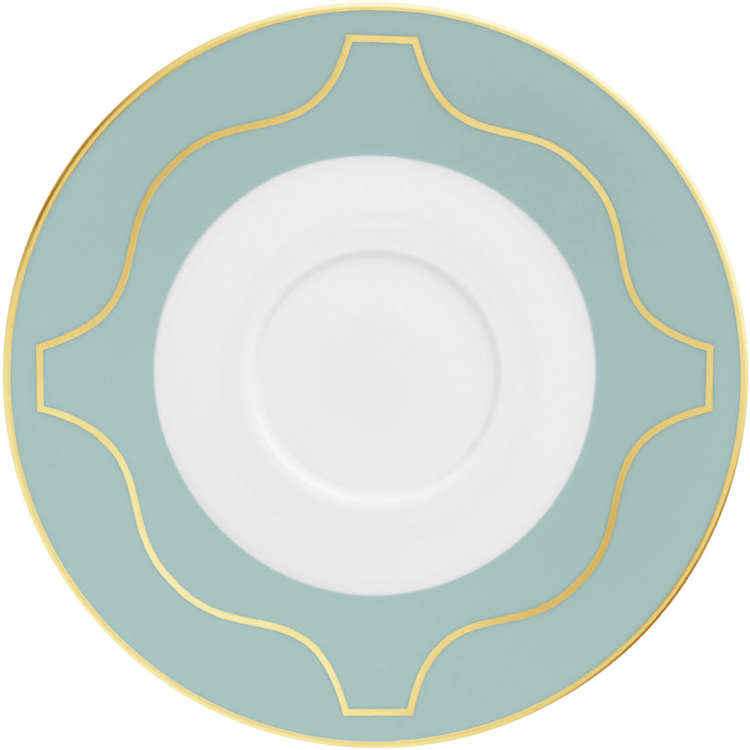 Turkusowo-zielony spodek uniwersalny o średnicy 16cm z pozłacaną dekoracją z kolekcji CARLO ESTE. CARLO ESTE to artystyczna i szlachetna kolekcja, która zachwyca luksusowymi odcieniami złota, subtelnych zieleni i niezwykłymi zdobieniami. Wrażenie na nakrytym stole przypomina artystyczne mozaiki, gdzie delikatne porcelanowe elementy doskonale współgrają z nowoczesnym stylem życia. Porcelana premium ESTE to nie tylko zwykłe naczynia, ale także wyjątkowe dzieła sztuki, które nadają elegancji każdej okazji. Zestaw ESTE to idealna propozycja dla tych, którzy cenią artystyczny design i wysoką jakość wykonania.