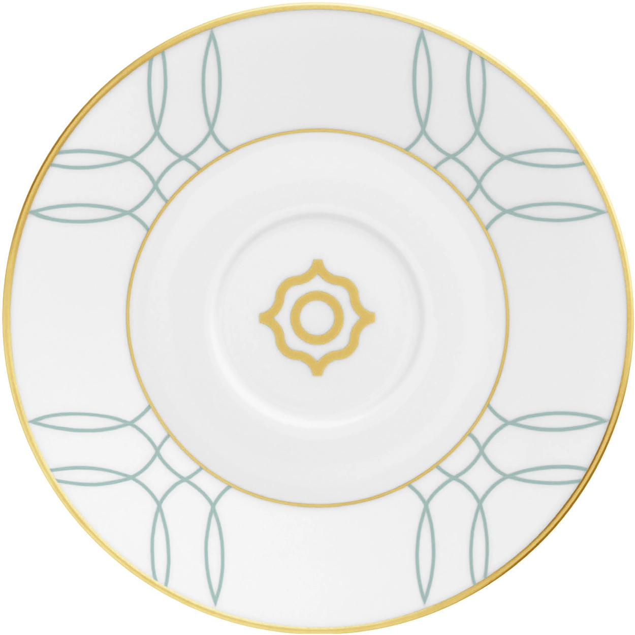 Biały spodek uniwersalny o średnicy 16cm z pozłacaną i zieloną dekoracją z kolekcji CARLO ESTE. CARLO ESTE to artystyczna i szlachetna kolekcja, która zachwyca luksusowymi odcieniami złota, subtelnych zieleni i niezwykłymi zdobieniami. Wrażenie na nakrytym stole przypomina artystyczne mozaiki, gdzie delikatne porcelanowe elementy doskonale współgrają z nowoczesnym stylem życia. Porcelana premium ESTE to nie tylko zwykłe naczynia, ale także wyjątkowe dzieła sztuki, które nadają elegancji każdej okazji. Zestaw ESTE to idealna propozycja dla tych, którzy cenią artystyczny design i wysoką jakość wykonania.