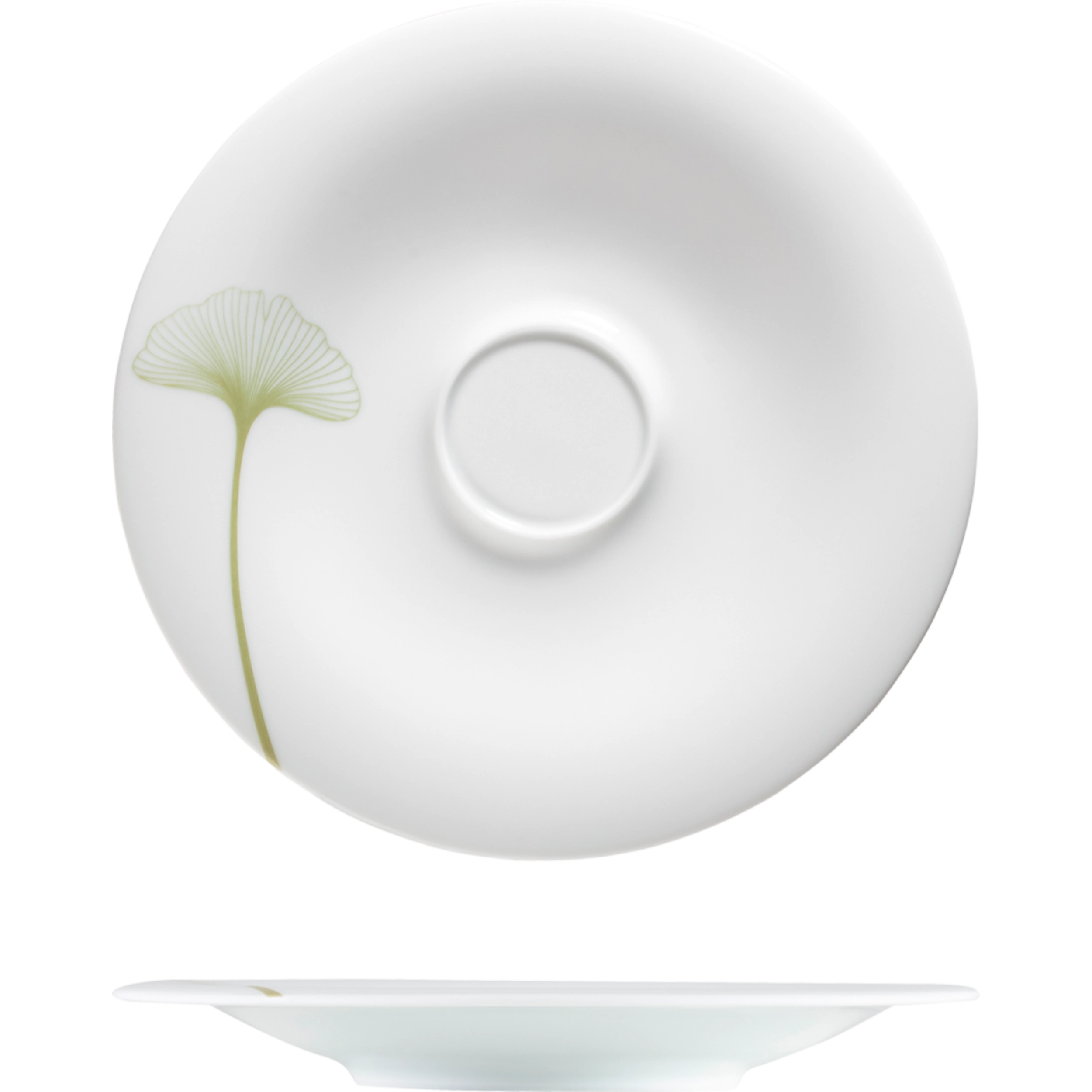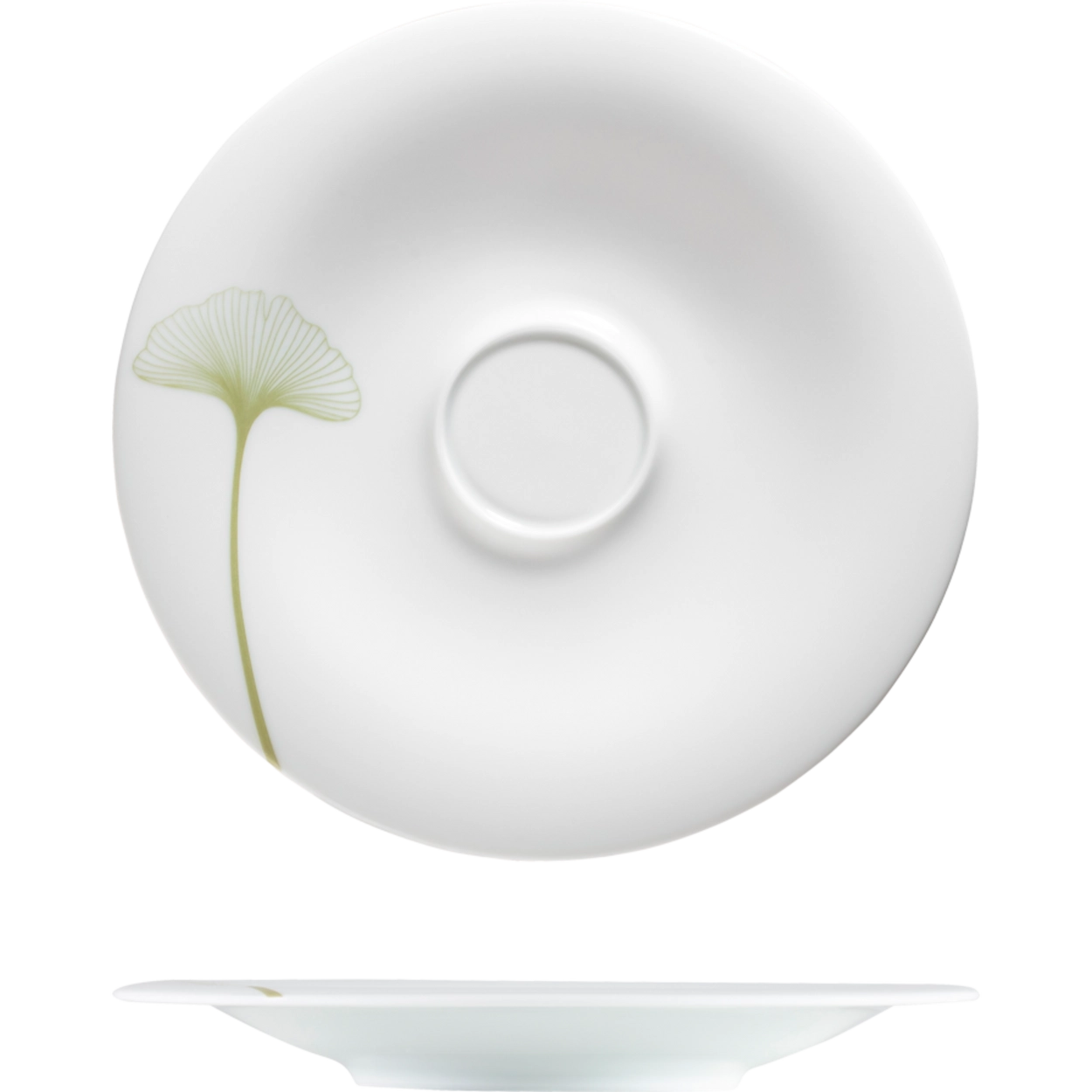 Spodek uniwersalny o średnicy 17cm z motywem liści miłorzębu z kolekcji FLUEN LIMINEA. FLUEN to nowa kolekcja zastawy stołowej stworzona przez Alfredo Häberli dla FÜRSTENBERG. Połączenie współczesnej elegancji i poetyckiej formy, która została nagrodzona German Design Award 2018. W tej zastawie poezja i precyzja płynnie się łączą, tworząc niezwykłą atmosferę na stole. Dekor LUMINEA wyróżnia się abstrakcyjnymi liśćmi miłorzębu, które w delikatnych odcieniach zieleni i szampana, z metalicznym perłowym akcentem, subtelnie podkreślają zakrzywiony design porcelany. Wyjątkowy charakter tego zestawu emanuje z lekko wypukłego, jedwabistego wyglądu dekoru LUMINEA.