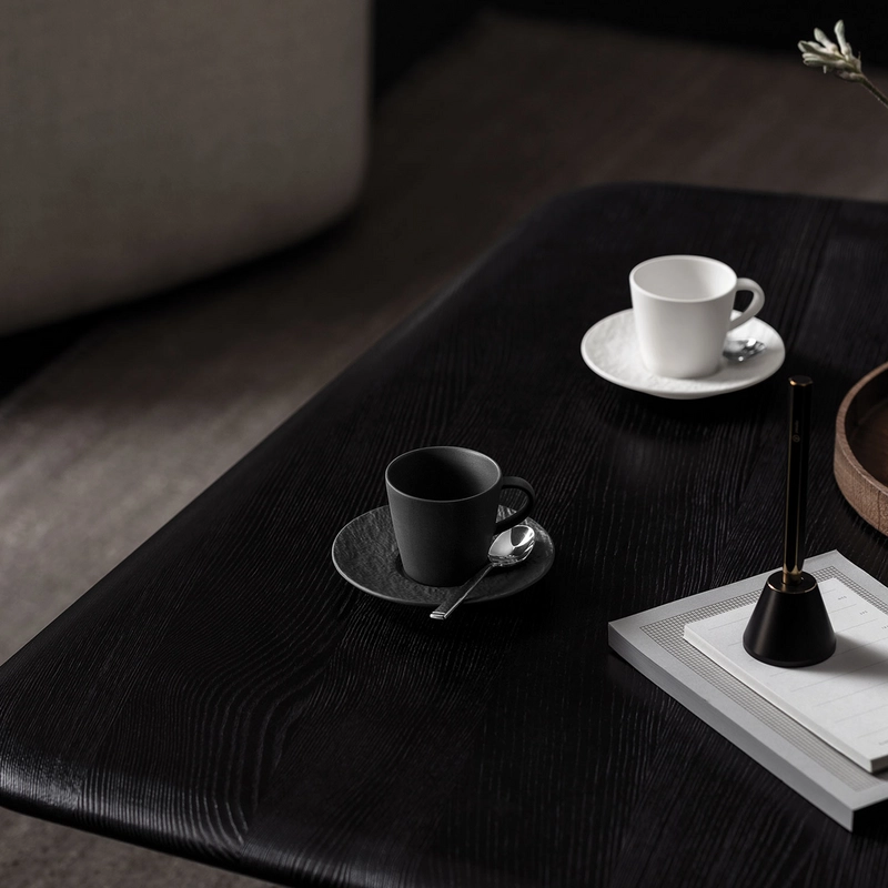 Filiżanka do espresso z kolekcji Manufacture Rock. Ciemna odsłona kolekcji Manufacture Rock nawiązuje do struktury łupka zarówno w wyglądzie, jak i w dotyku. Struktura skały z delikatnym reliefem, nierównymi krawędziami oraz matowym wykończeniem sprawia, że każdy element prezentuje się wyjątkowo i nowocześnie. Surowy wygląd porcelany wyróżnia całą kolekcję na tle innych, klasycznych zastaw stołowych. Wyraziste powierzchnie nawiązują do obecnych trendów, a dzięki połączeniu z innymi elementami, takimi jak szklanki, sztućce oraz akcesoria możesz stworzyć własną, wyjątkową kolekcję. Uzyskaj zaskakujący efekt łącząc serię Manufacture Rock z białą lub miedzianą wersją.