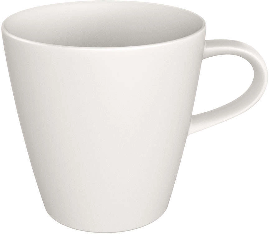 Kubek z kolekcji Manufacture Rock blanc. Biała kolekcja Manufacture Rock blanc nawiązuje do struktury łupka zarówno w wyglądzie, jak i w dotyku. Struktura skały z delikatnym reliefem, nierównymi krawędziami oraz matowym wykończeniem sprawia, że każdy element prezentuje się wyjątkowo i nowocześnie. Surowy wygląd porcelany wyróżnia całą kolekcję na tle innych, klasycznych zastaw stołowych. Wyraziste powierzchnie nawiązują do obecnych trendów, a dzięki połączeniu z innymi elementami, takimi jak szklanki, sztućce oraz akcesoria możesz stworzyć własną, wyjątkową kolekcję. Uzyskaj zaskakujący efekt łącząc serię Manufacture Rock blanc z typową dla łupka, bardzo ciemną szarością  Manufacture Rock.