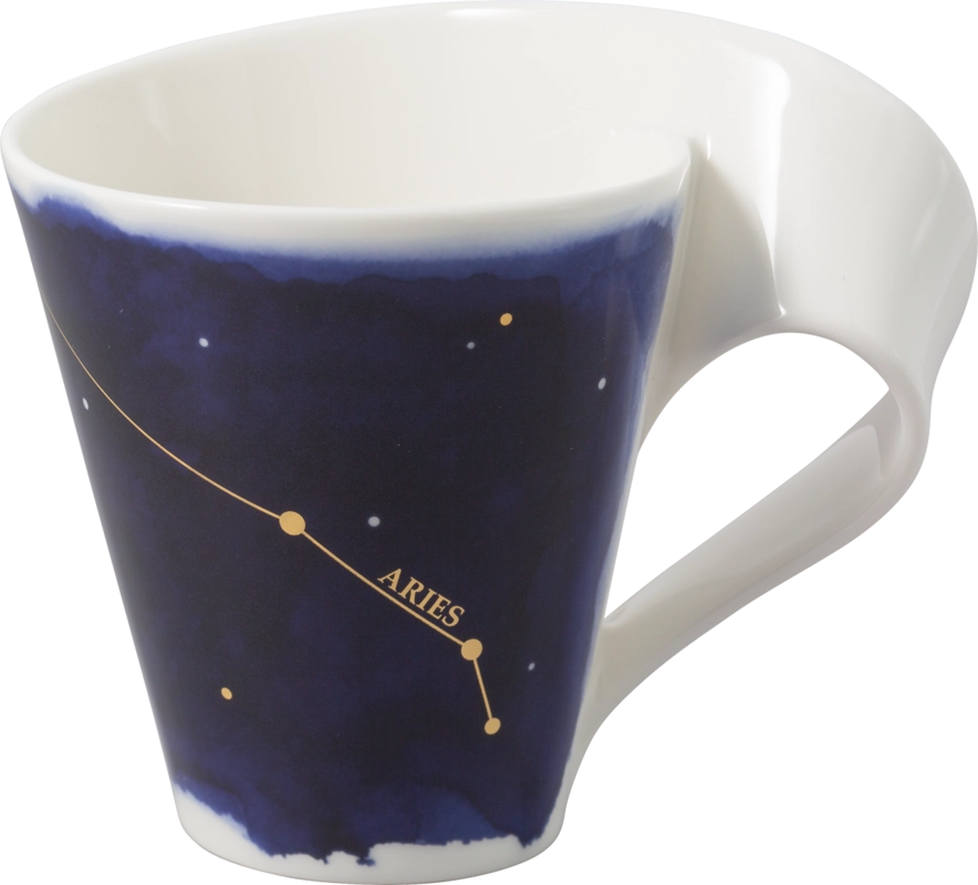 Kubek Baran z kolekcji NewWave Stars. Kolekcja NewWave Stars to najnowsza odsłona bestsellerowej kolekcji NewWave inspirowana znakami zodiaku. Połączenie białej porcelany z ciemnoniebieskim tłem oraz subtelnymi złotymi gwiazdozbiorami wprowadza niesamowity nastrój do Twojego wnętrza. Złote konstelacje nadają eleganckiego oraz mistycznego wyglądu. Udoskonalona porcelana premium wykorzystana do stworzenia tej kolekcji charakteryzuje się jeszcze wyższą trwałością i odpornością na uszczerbienia. Dobierz swój znak zodiaku spośród 12 różnych kubków lub sprezentuj go najbliższej osobie i celebruj chwilę relaksu z Villeroy&Boch!