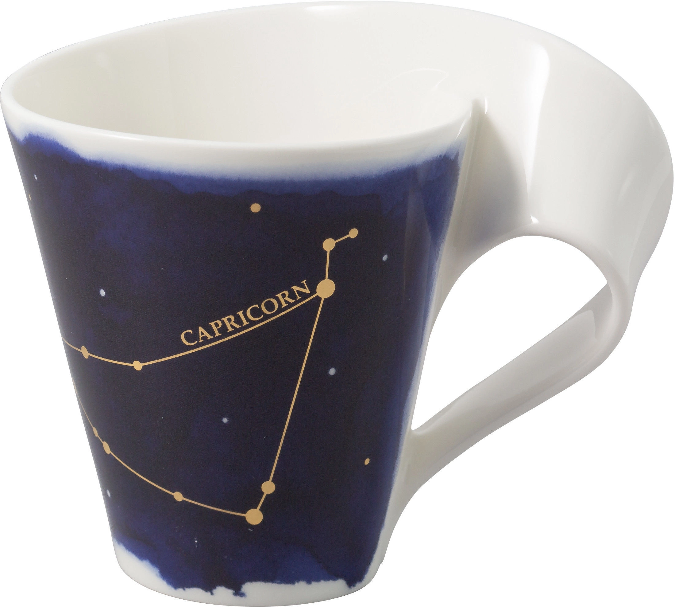 Kubek Koziorożec z kolekcji NewWave Stars. Kolekcja NewWave Stars to najnowsza odsłona bestsellerowej kolekcji NewWave inspirowana znakami zodiaku. Połączenie białej porcelany z ciemnoniebieskim tłem oraz subtelnymi złotymi gwiazdozbiorami wprowadza niesamowity nastrój do Twojego wnętrza.  Złote konstelacje nadają eleganckiego oraz mistycznego wyglądu.  Udoskonalona porcelana premium wykorzystana do stworzenia tej kolekcji charakteryzuje się jeszcze wyższą trwałością i odpornością na uszczerbienia. Dobierz swój znak zodiaku spośród 12 różnych kubków lub sprezentuj go najbliższej osobie i celebruj chwilę relaksu z Villeroy&Boch!