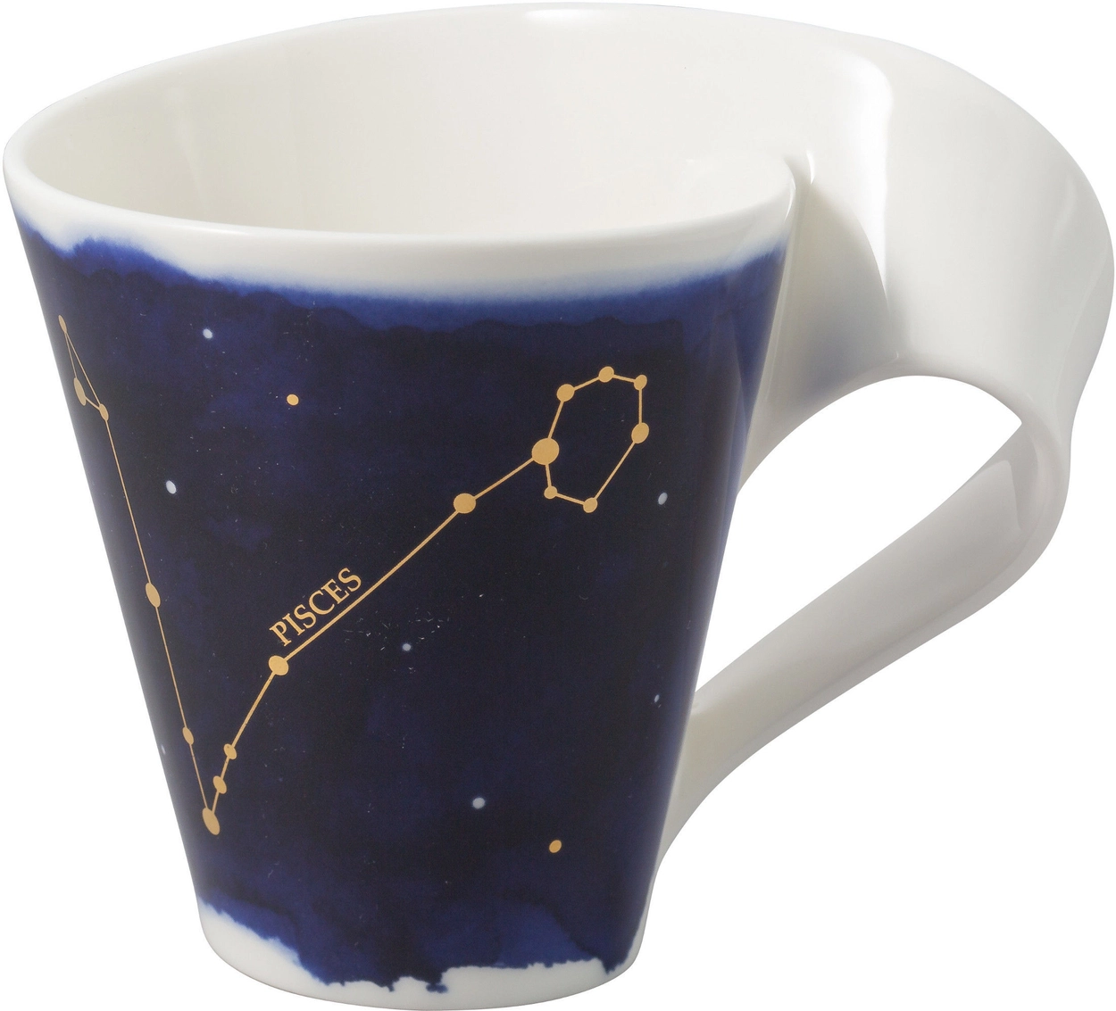 Kubek Ryby z kolekcji NewWave Stars. Kolekcja NewWave Stars to najnowsza odsłona bestsellerowej kolekcji NewWave inspirowana znakami zodiaku. Połączenie białej porcelany z ciemnoniebieskim tłem oraz subtelnymi złotymi gwiazdozbiorami wprowadza niesamowity nastrój do Twojego wnętrza. Złote konstelacje nadają eleganckiego oraz mistycznego wyglądu. Udoskonalona porcelana premium wykorzystana do stworzenia tej kolekcji charakteryzuje się jeszcze wyższą trwałością i odpornością na uszczerbienia. Dobierz swój znak zodiaku spośród 12 różnych kubków lub sprezentuj go najbliższej osobie i celebruj chwilę relaksu z Villeroy&Boch!