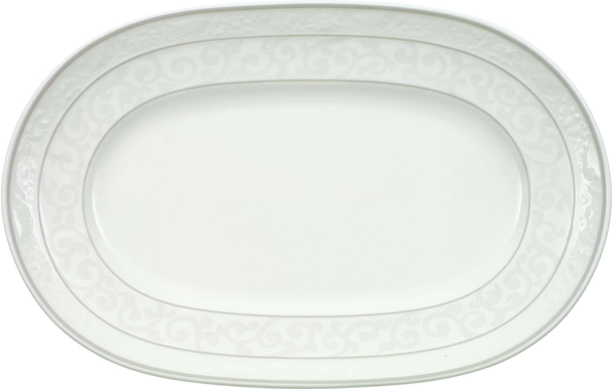 Półmisek na pikle/spodek sosjerki z kolekcji Gray Pearl. Kolekcja Gray Pearl to połączenie najwyższej jakości białej porcelany kostnej z delikatnie wypukłym srebrnoszarym dekorem i szarą lamówką. Motywy kwiatów i roślin idealnie współgrają z błyszczącą porcelaną tworząc jedność i nadając całej zastawie wyjątkowej elegancji i szlachetności. Klasyczny kształt sprawdzi się przy każdej uroczystości dodając jej niezwyłego uroku. Zaaranżuj najpiękniejsze chwile z bliskimi z zastawą Gray Pearl!
