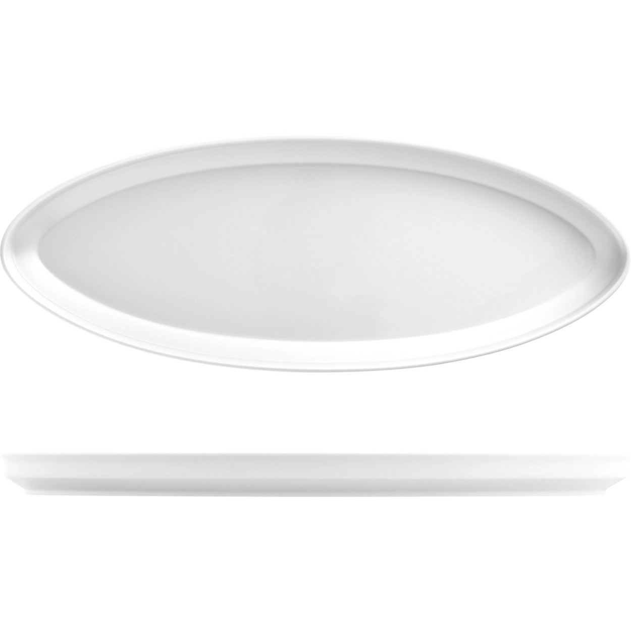 Talerz owalny o długości 44.5cm z kolekcji CARLO WHITE. Zainspirowana harmonią klasycznego i nowoczesnego designu, linia CARLO to doskonały przykład współczesnego podejścia do estetyki. Stworzona przez pełnego pasji włoskiego projektanta Carlo Dal Bianco, forma tej porcelany łączy precyzyjne struktury geometryczne z zabawnie zakrzywionymi uchwytami.