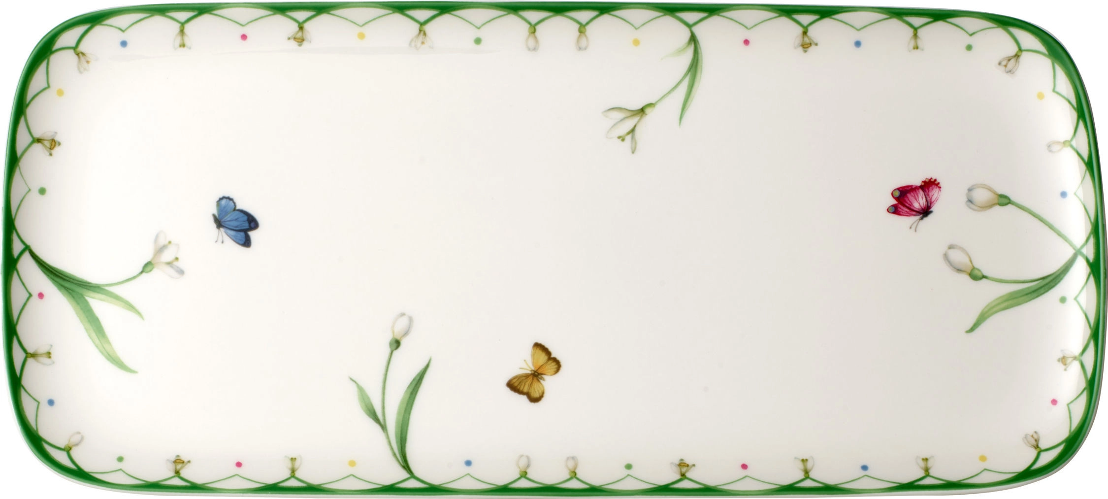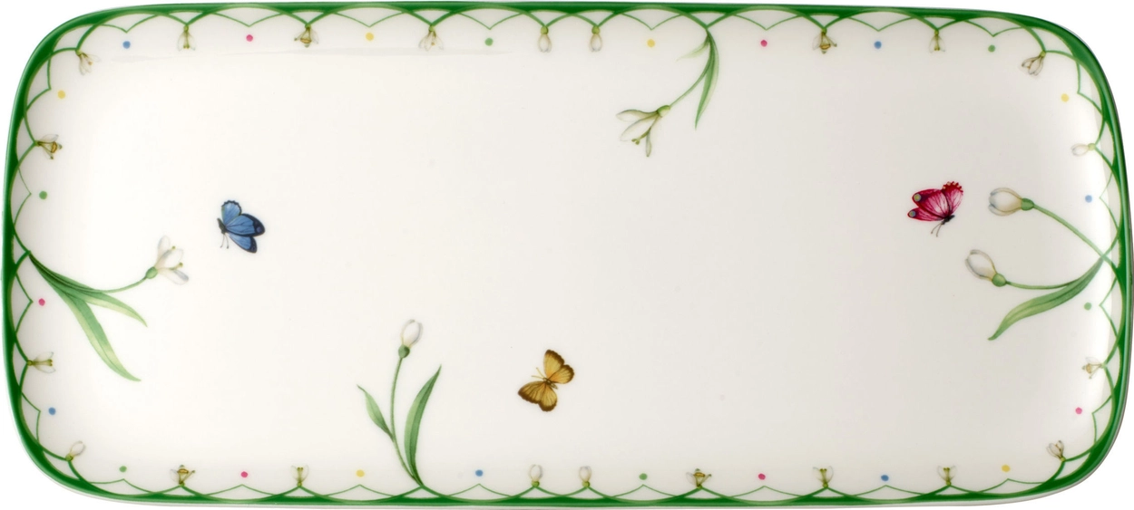 Talerz porcelanowy na kanapki z kolekcji Villeroy & Boch Colourful Spring. Kolekcja Colourful Spring to połączenie wiosennych motywów z wysokogatunkową porcelaną premium. Przebiśniegi i motyle to symbole zwiastujące nadchodzącą wiosnę, a razem z nią piękne, słoneczne dni. Zachwyci Ciebie i Twoich gości zarówno podczas wielkanocnego śniadania, jak i przez cały rok. Połącz elementy ze sobą różne elementy i stwórz własną, oryginalną dekorację. Doskonale będą się prezentować także w połączeniu z innymi kolekcjami, np. Colourful Life. Wprowadź lekkość i świeżość na swój stół i do swojego domu z porcelaną marki Villeroy&Boch!