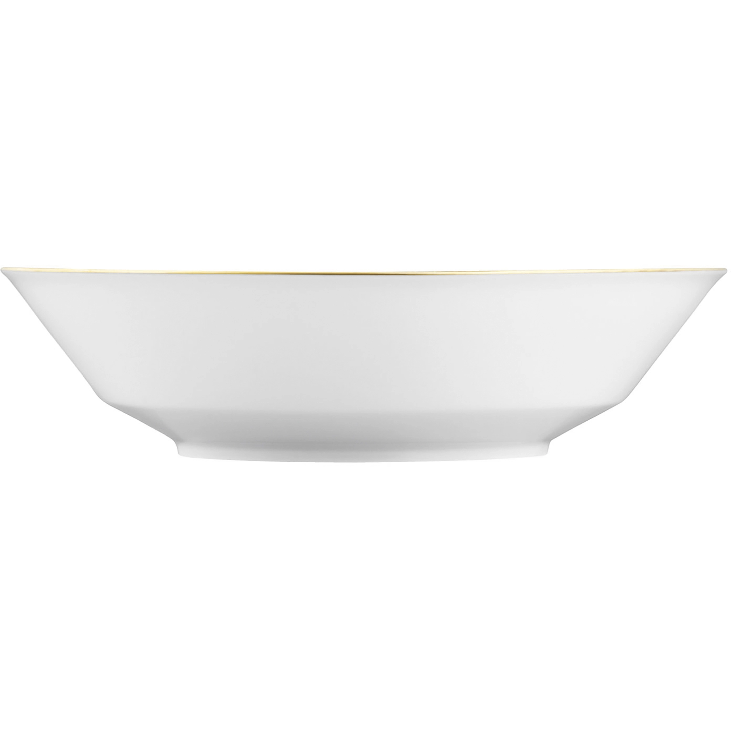 Klasyczna miska płaska o średnicy 21cm idealna do serwowania zup czy sałatki z brzegiem pokrytym 24-karatowym złotem z kolekcji CARLO ORO. Dekor ORO to arcydzieło ręcznie nakładanych i gładko wypolerowanych złotych pociągnięć pędzla, które nadają każdemu egzemplarzowi niepowtarzalny charakter. Złota obwódka delikatnie podkreśla elegancką sylwetkę, dodając tej kolekcji wyjątkowego uroku. ORO to nie tylko porcelana, to sztuka stołowa nowoczesności z wyrafinowanym, ręcznie naniesionym złotem 24-karatowym.